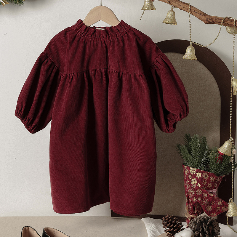 クリスマスコーデュロイプリンセスドレス 女の子用 ベビー服 25春秋新作 子供服 ゴム入り襟付き パレス風 綿100%ワンピース