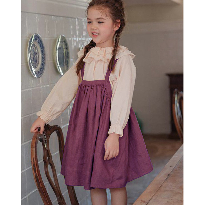 日本の牧歌的なスタイルの純綿サスペンダースカート女の子のための 2025 夏の新しい無地ルーズ弾性ウエストスカート女の赤ちゃんのため