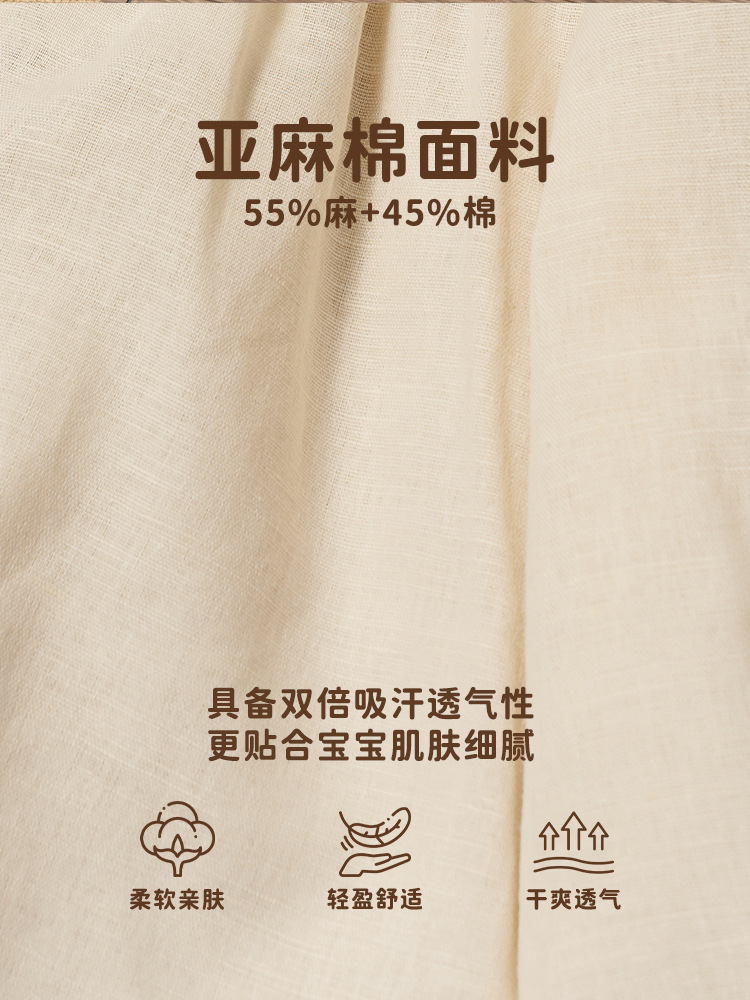春と秋の綿とリネンのTシャツ子供服クロスボーダーハーフオープンカラー長袖トップス男性と女性のベビーフォレスト長袖リネンシャツ