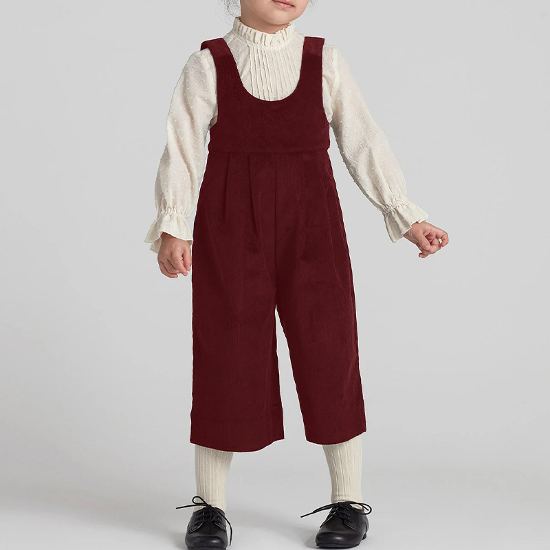 子供ドレス U ネックコーデュロイプリンセスドレス 2025 春と秋の新レトロレッドガールベビー A ラインサスペンダースカート