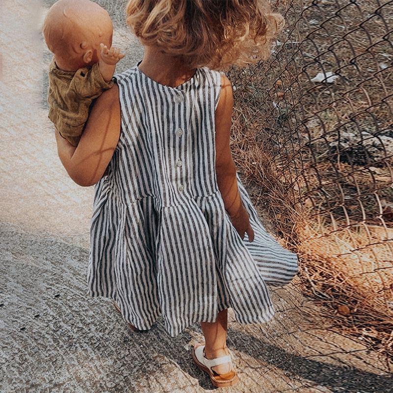 欧米の女性の子供服の綿麻のワンピースの夏の背もたれのスカート