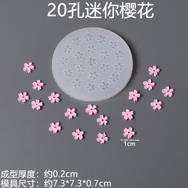 总模具尺寸约:20孔迷你樱花模具:7.3*7.3*0.7cm,
