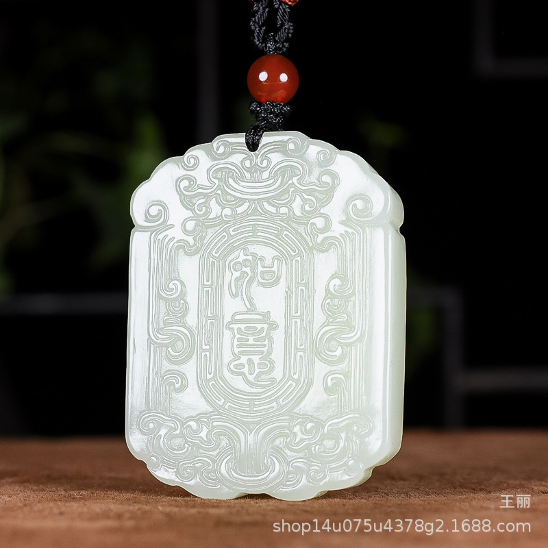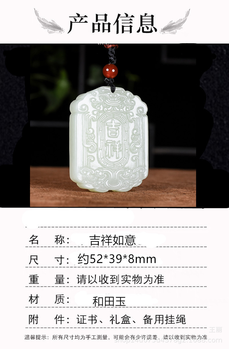 天然和田玉吉祥如意牌首飾りペンダント新疆白玉男女ストラッププレゼントペンダント