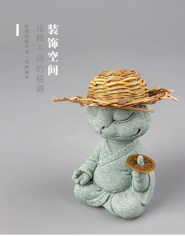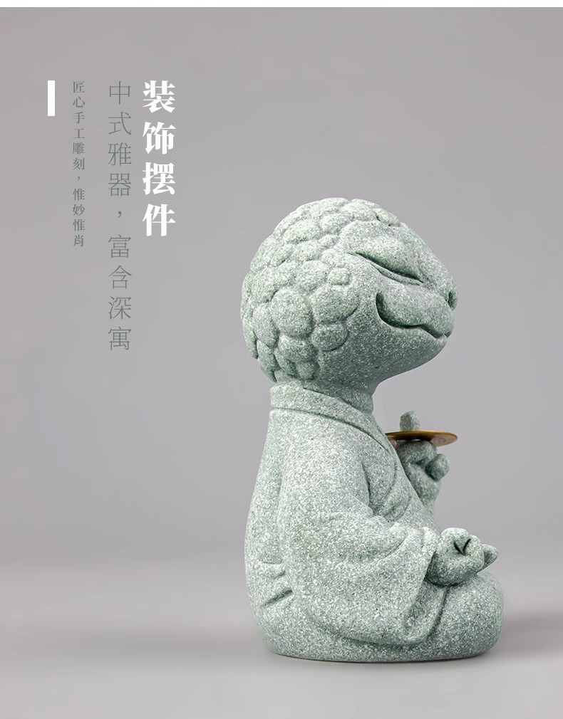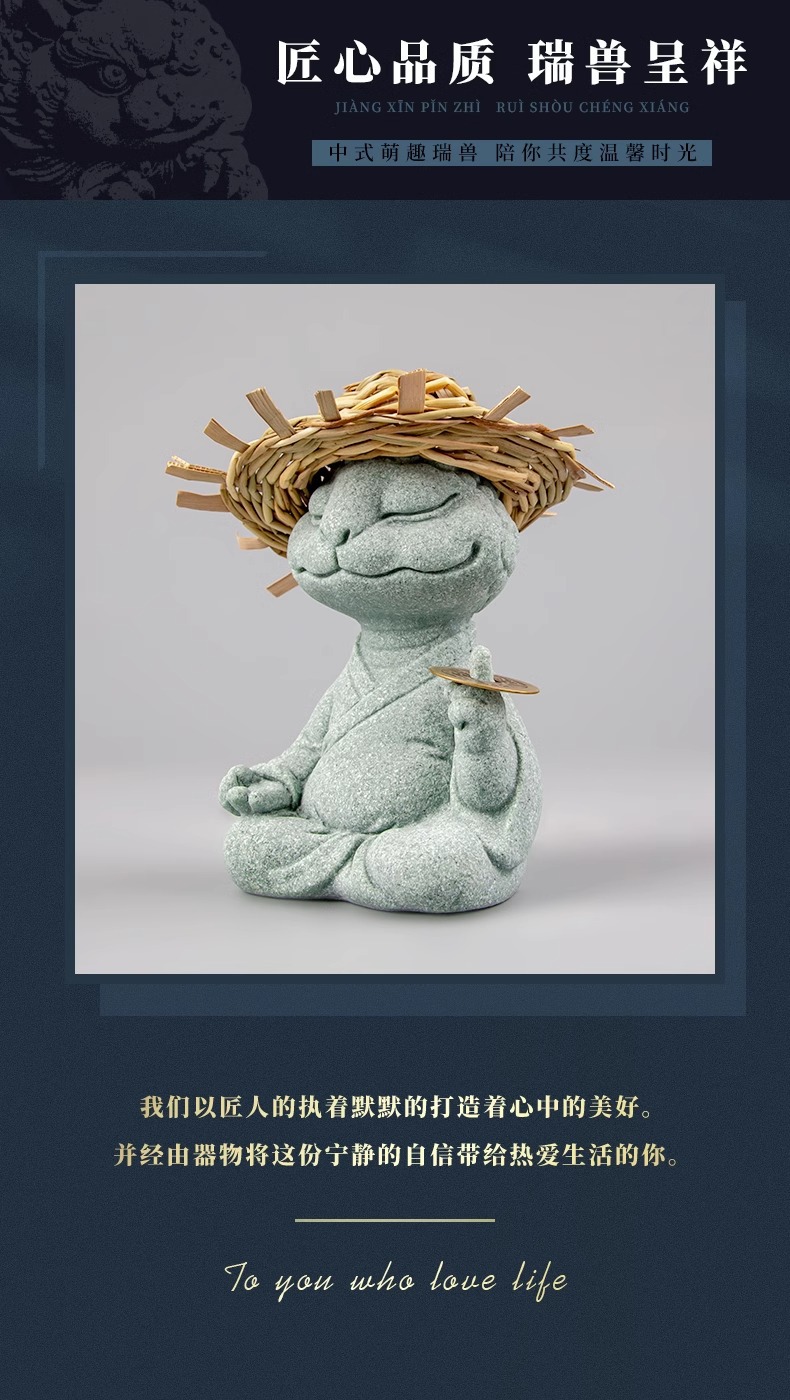 青砂石招財水神守護神獣置物金魚鉢造景オフィスホーム贈り物創意デスクトップ茶寵