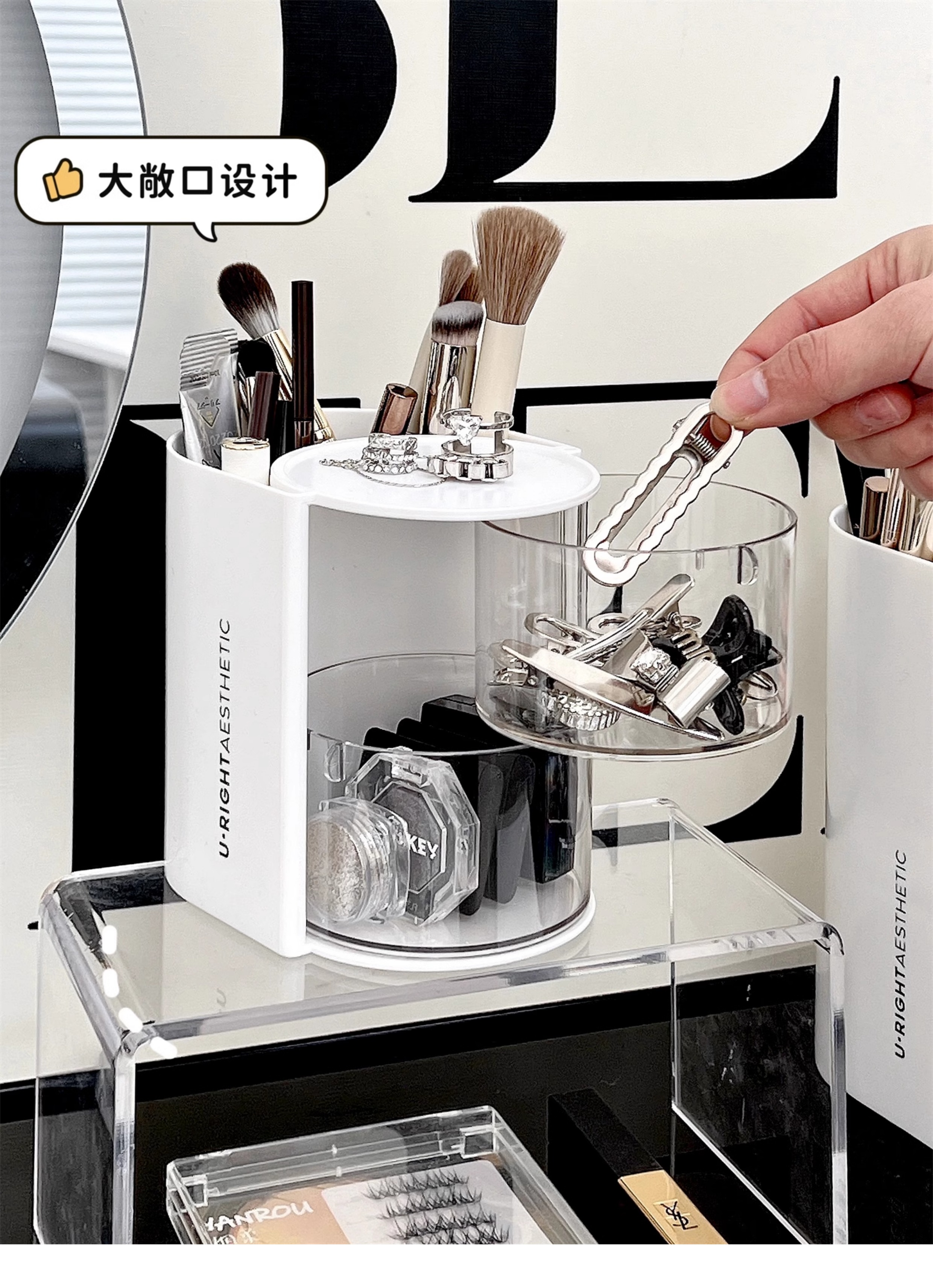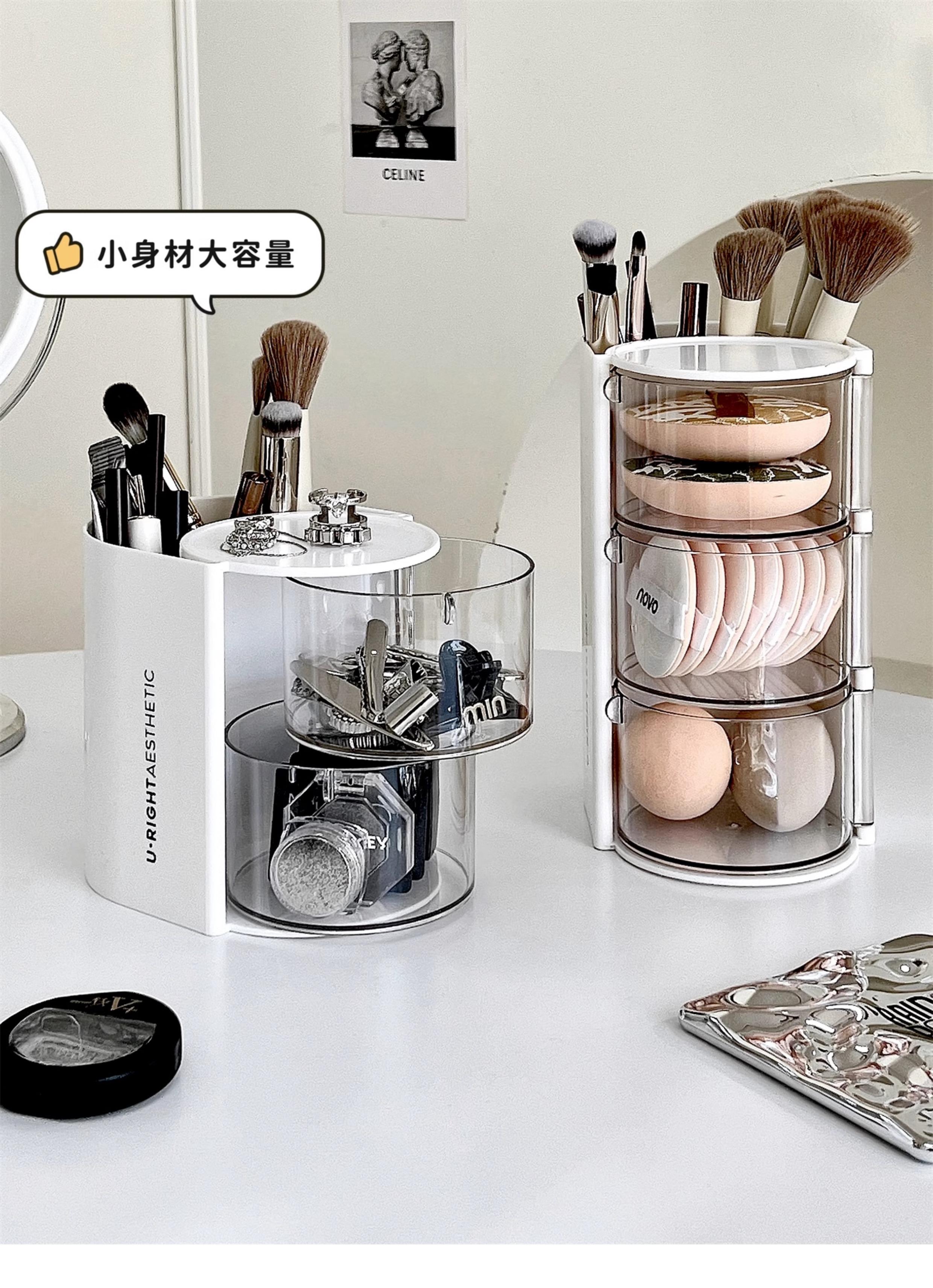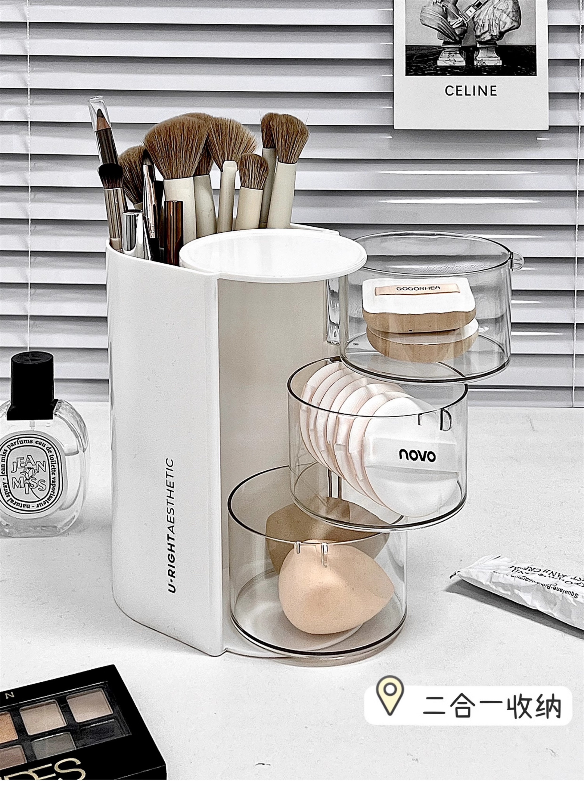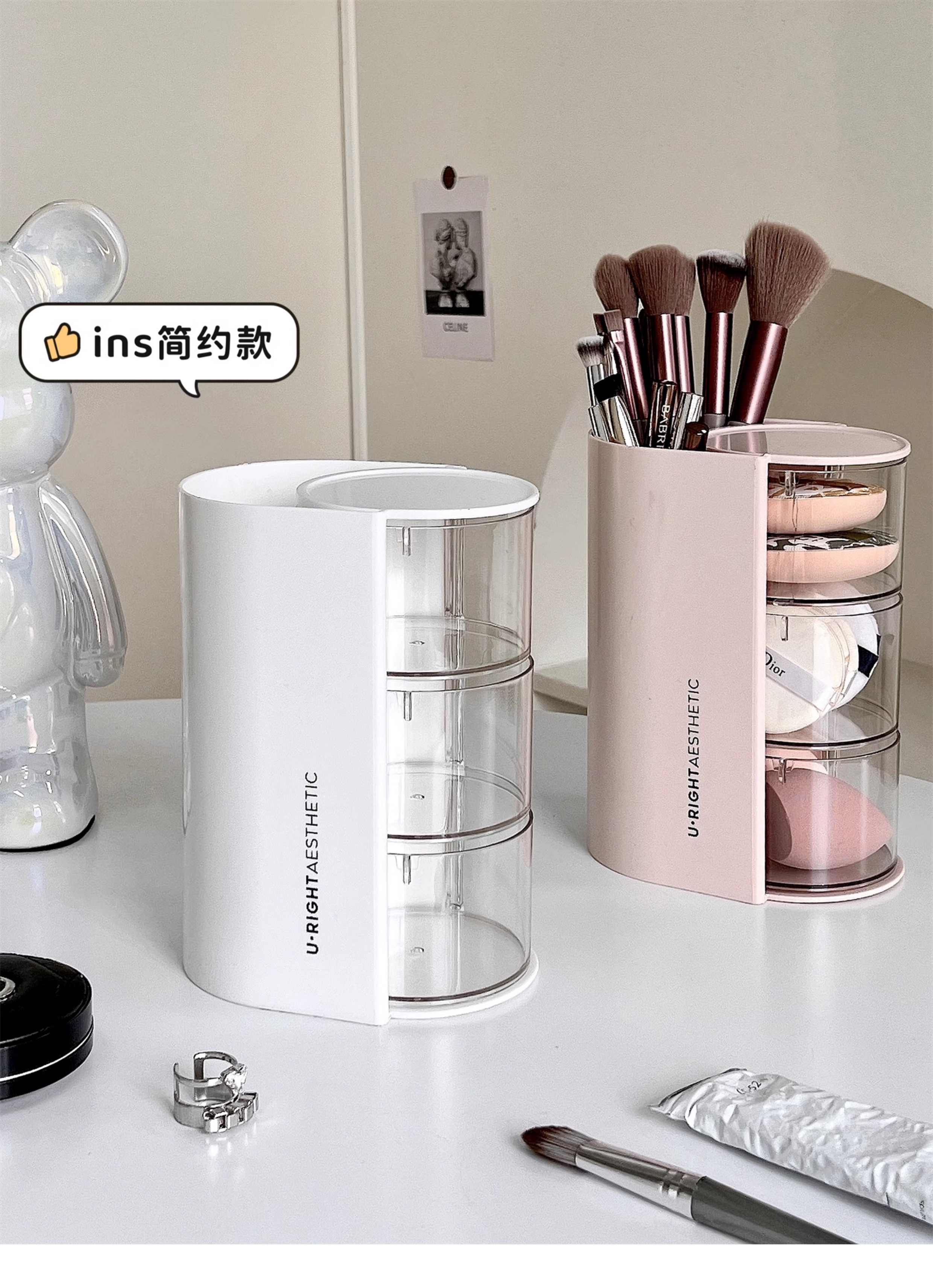 粉扑收纳盒旋转防尘梳妆台桌面美妆蛋气垫口红化妆刷收纳筒置物架