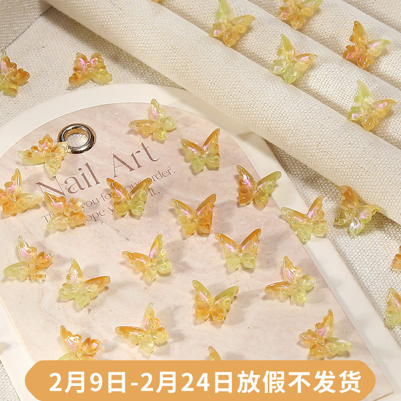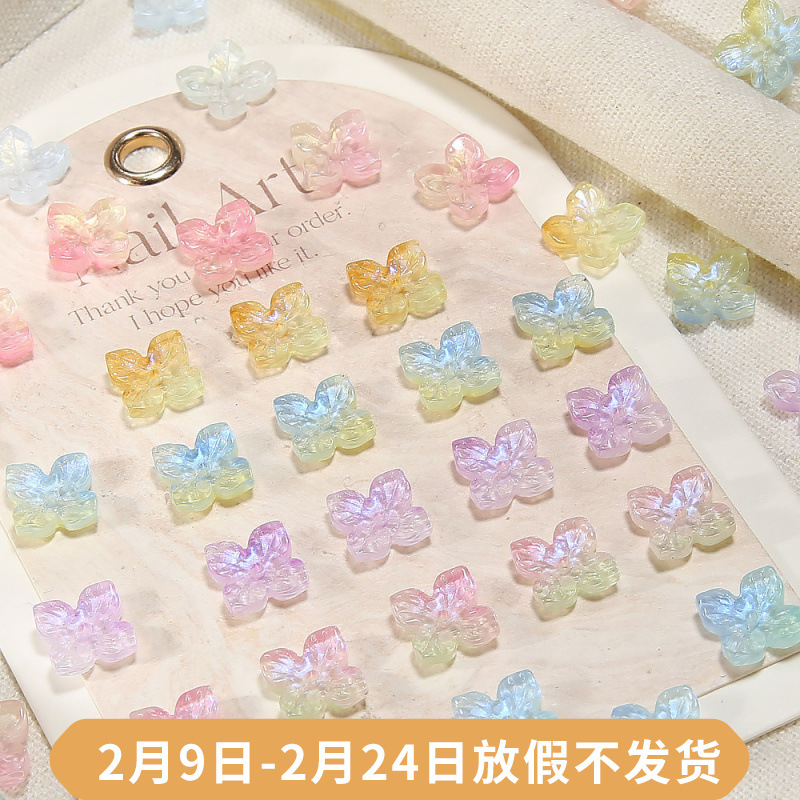 10x12mm [立体中穴蝶] ガラス羽蝶ビーズ手作り DIY ネイルアートヘアピンブレスレット素材