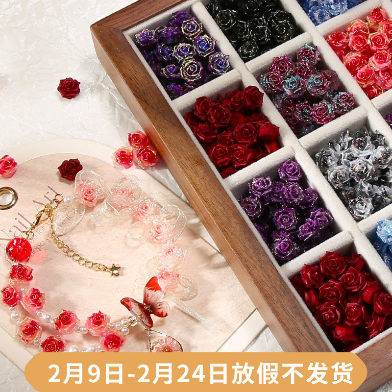 ダークカラーのソフトジェルフラワー、穴なし微光夜光フラワーレジンDIY手作りブレスレット、ネイルアート、イヤリング、スマホケース