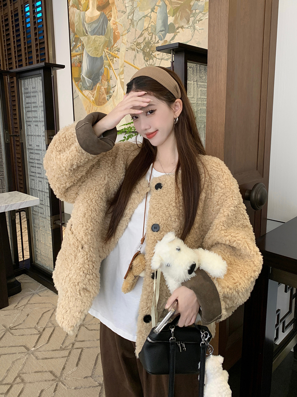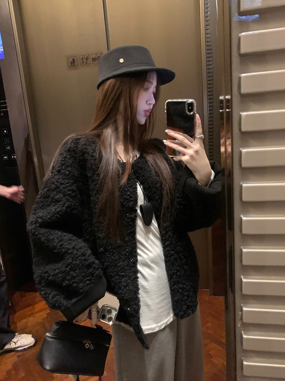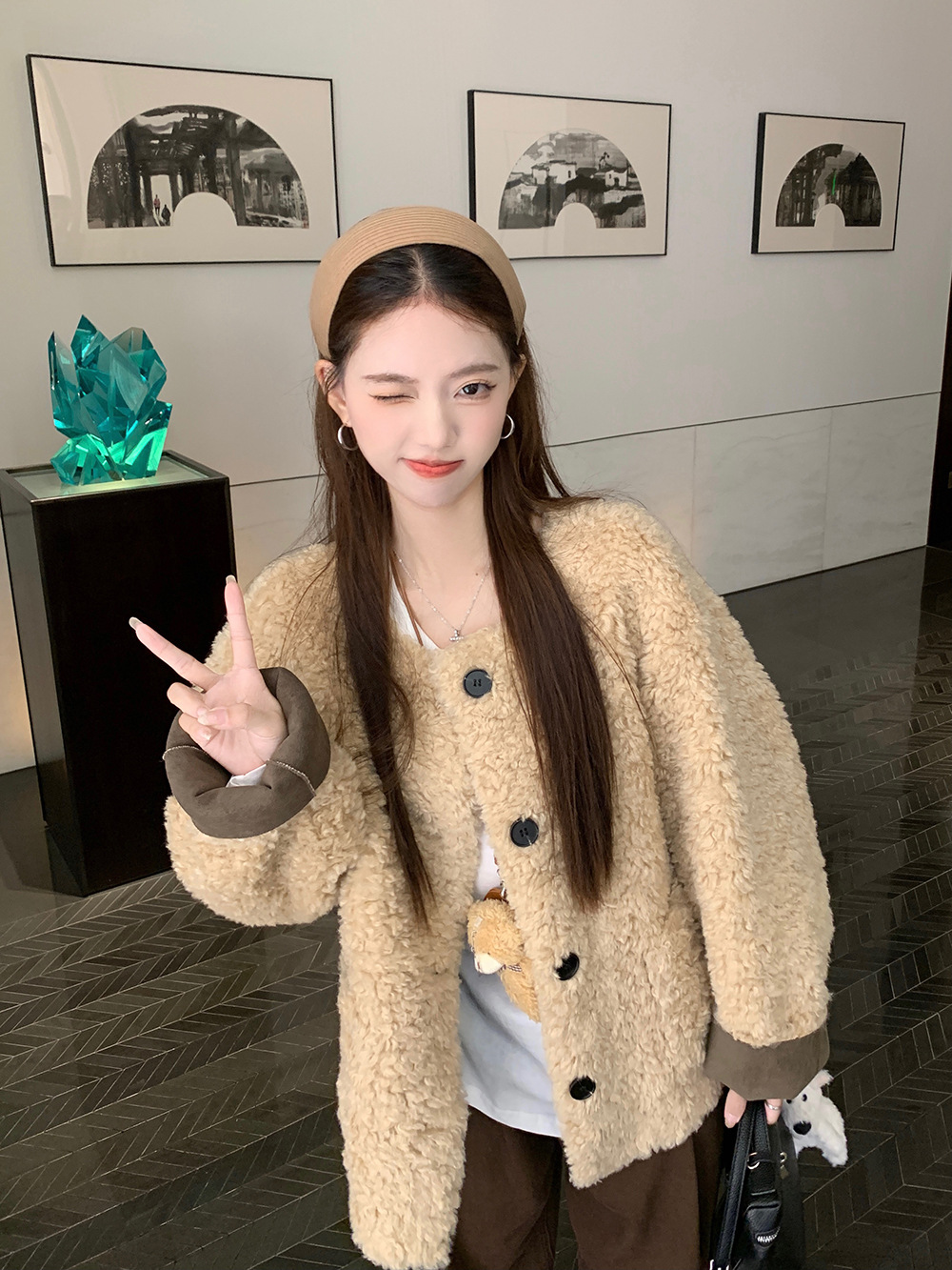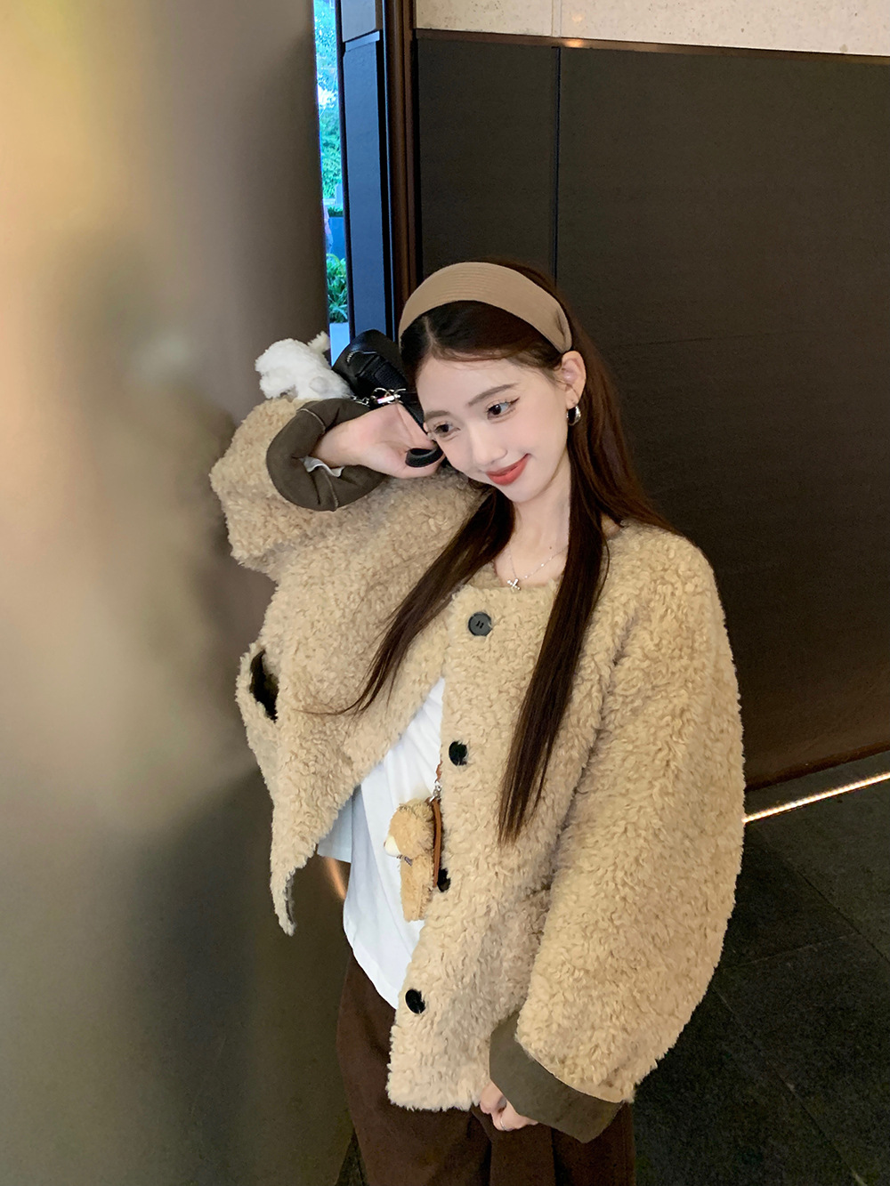 韩系早秋穿搭仿羊羔毛绒外套女秋冬季新款小个子香风宽松保暖上衣