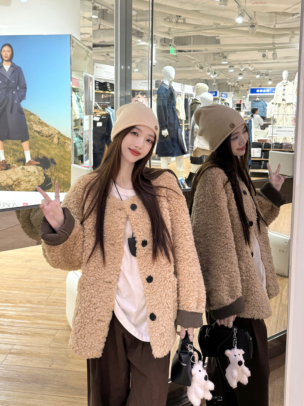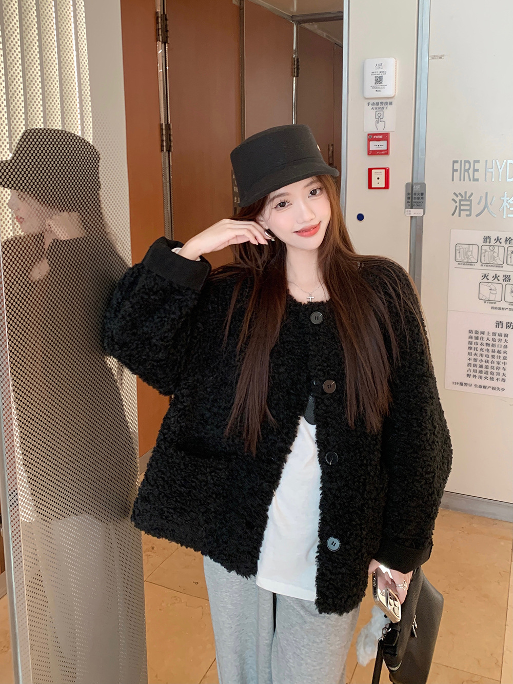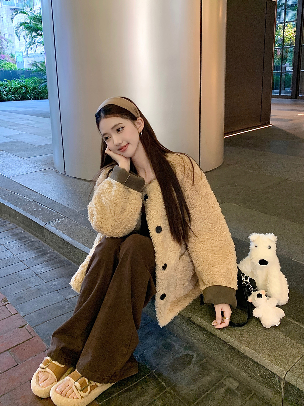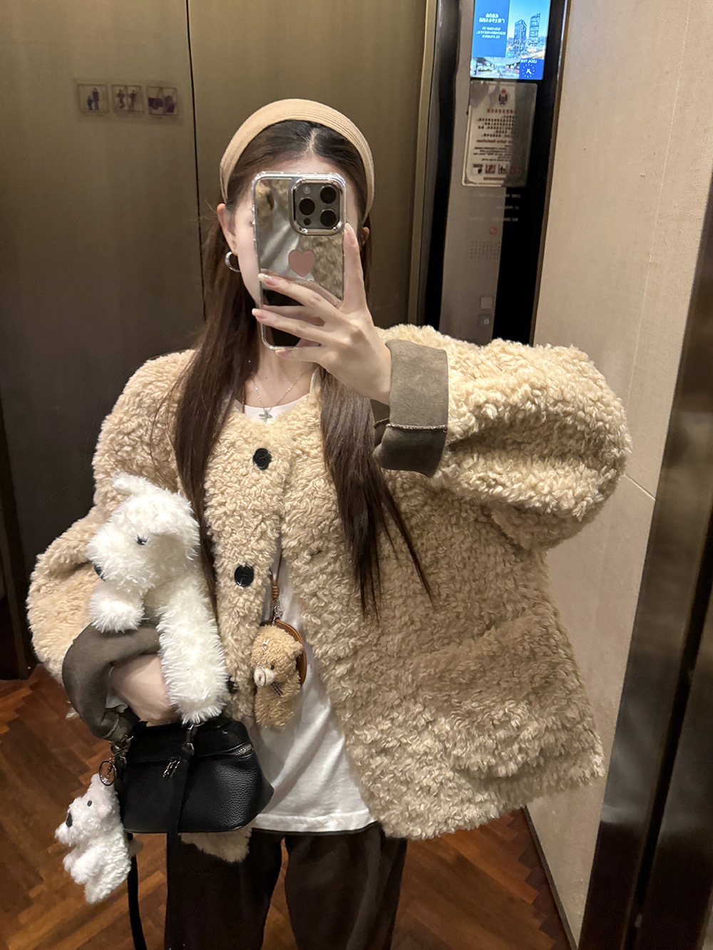 韩系早秋穿搭仿羊羔毛绒外套女秋冬季新款小个子香风宽松保暖上衣