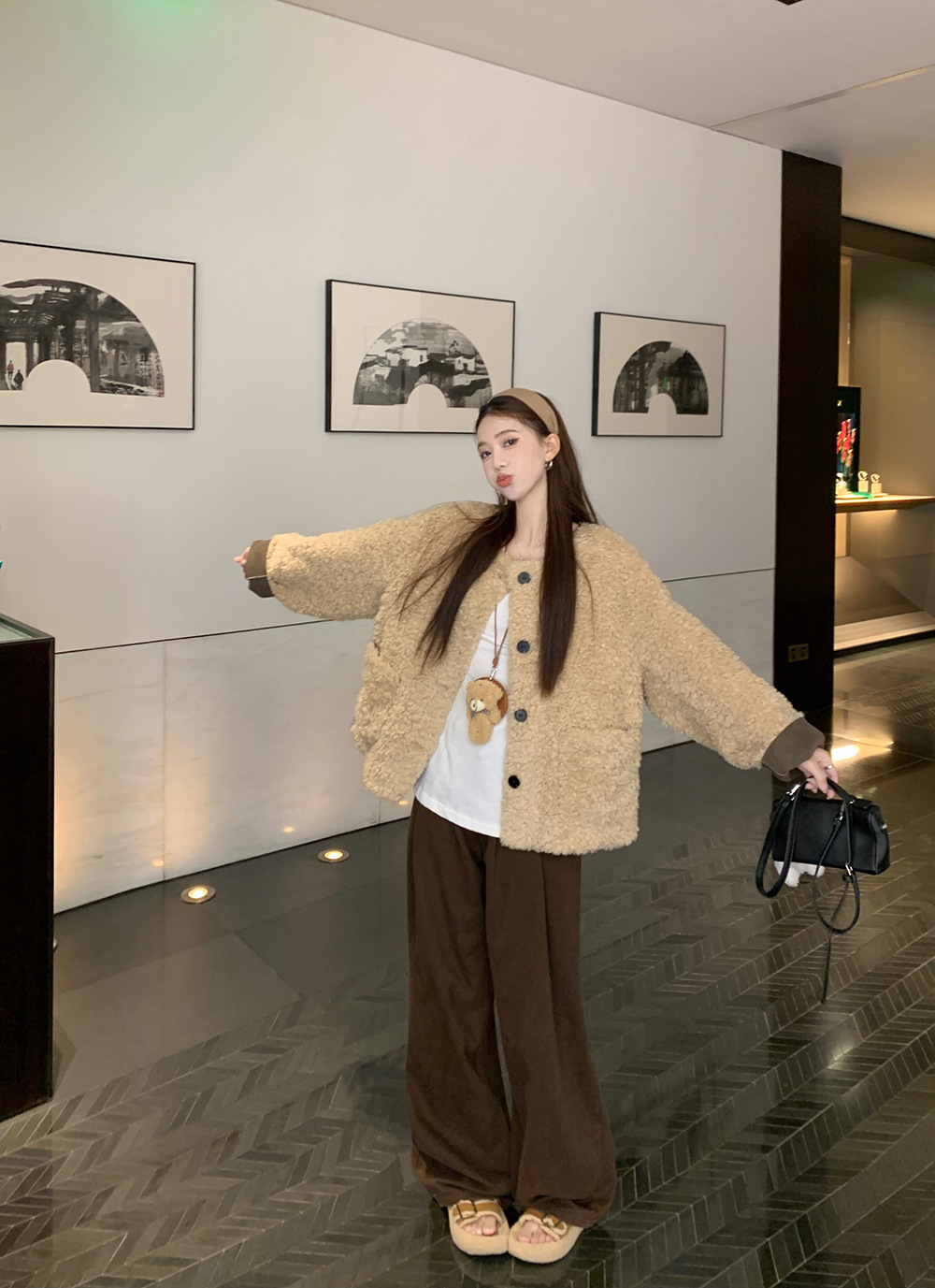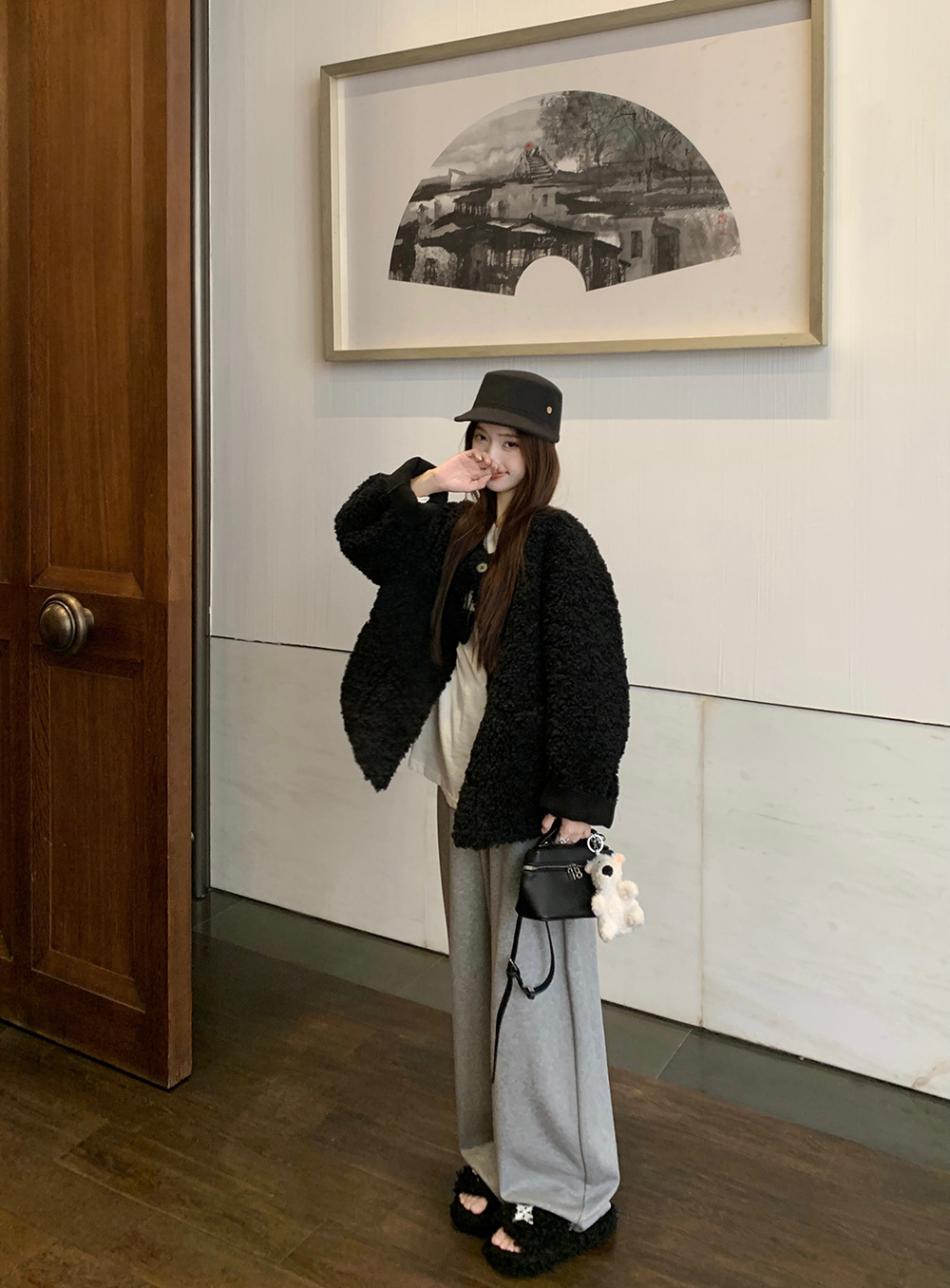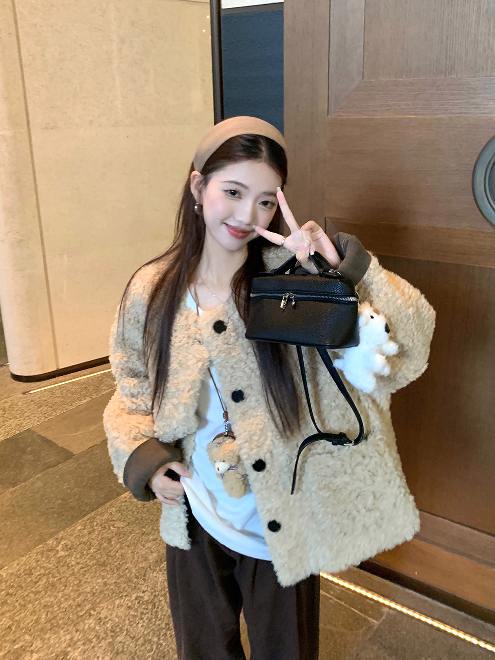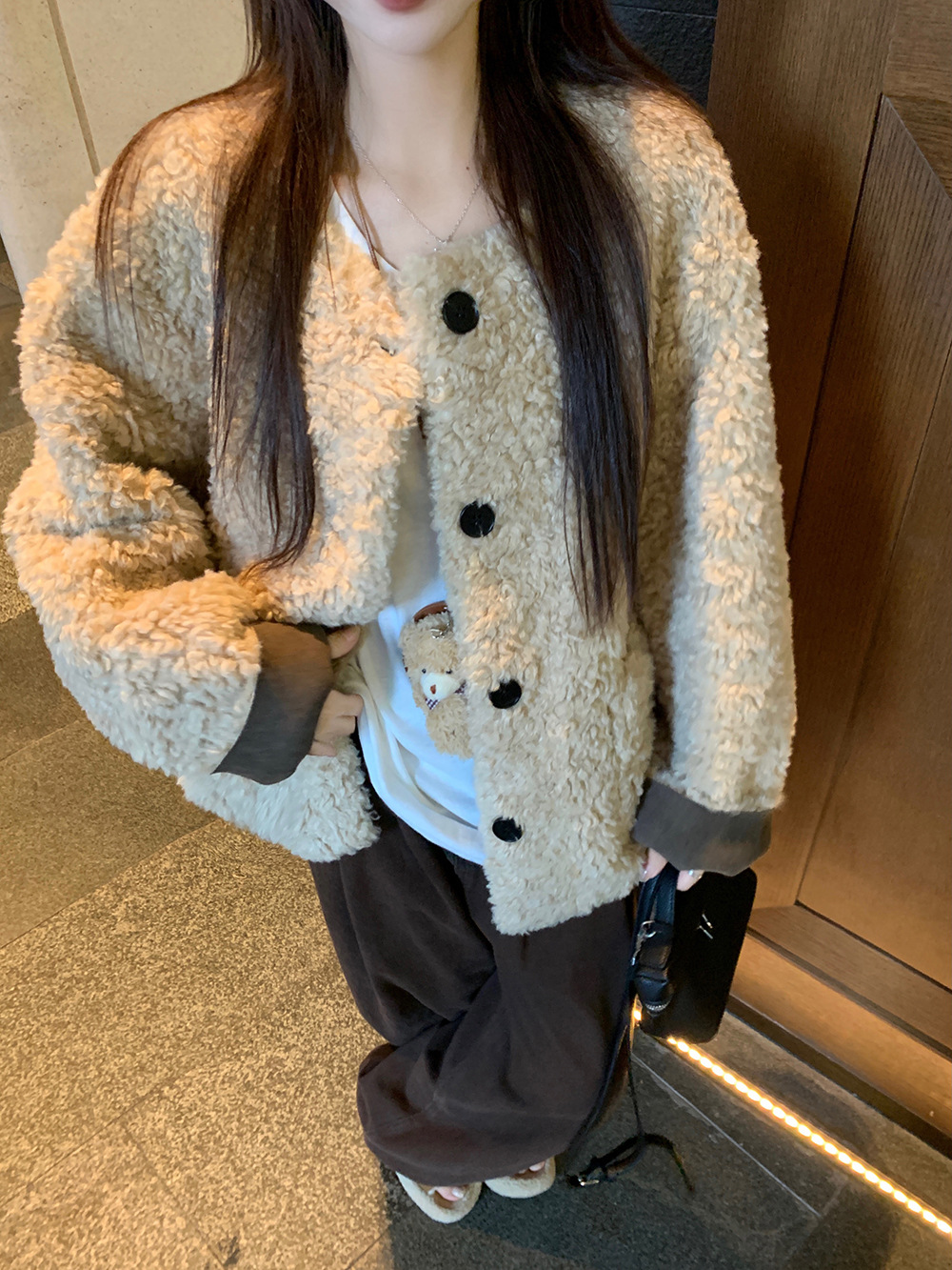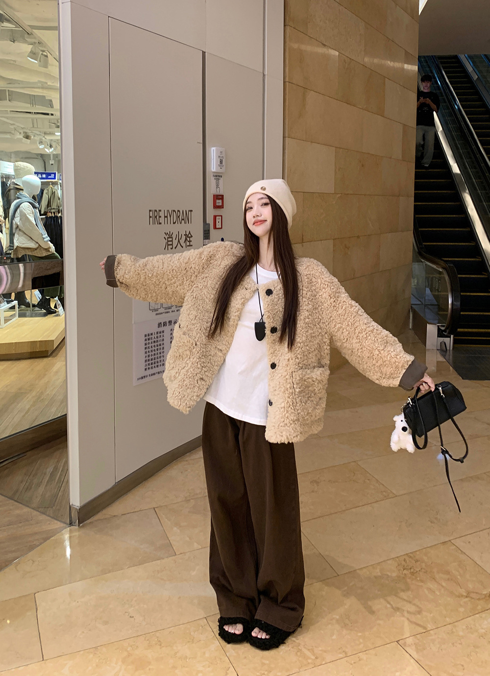 韩系早秋穿搭仿羊羔毛绒外套女秋冬季新款小个子香风宽松保暖上衣