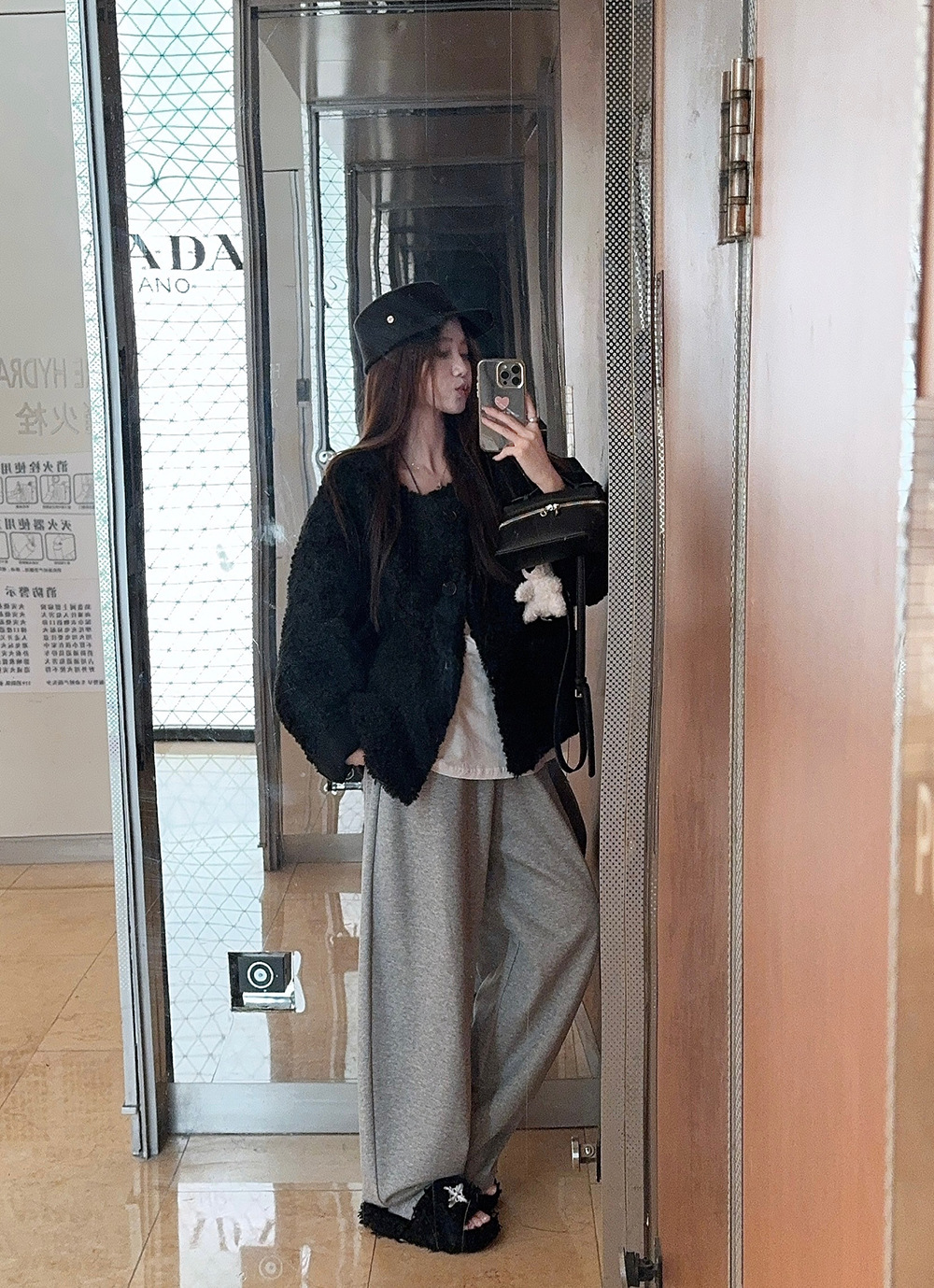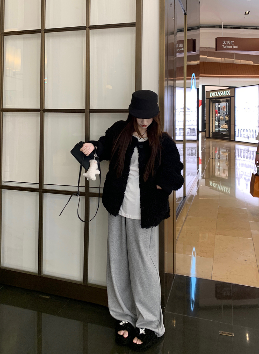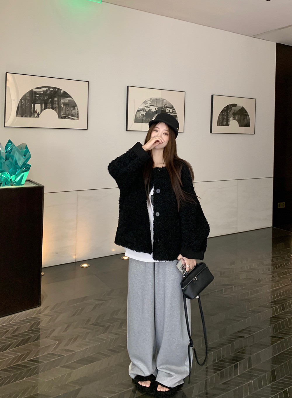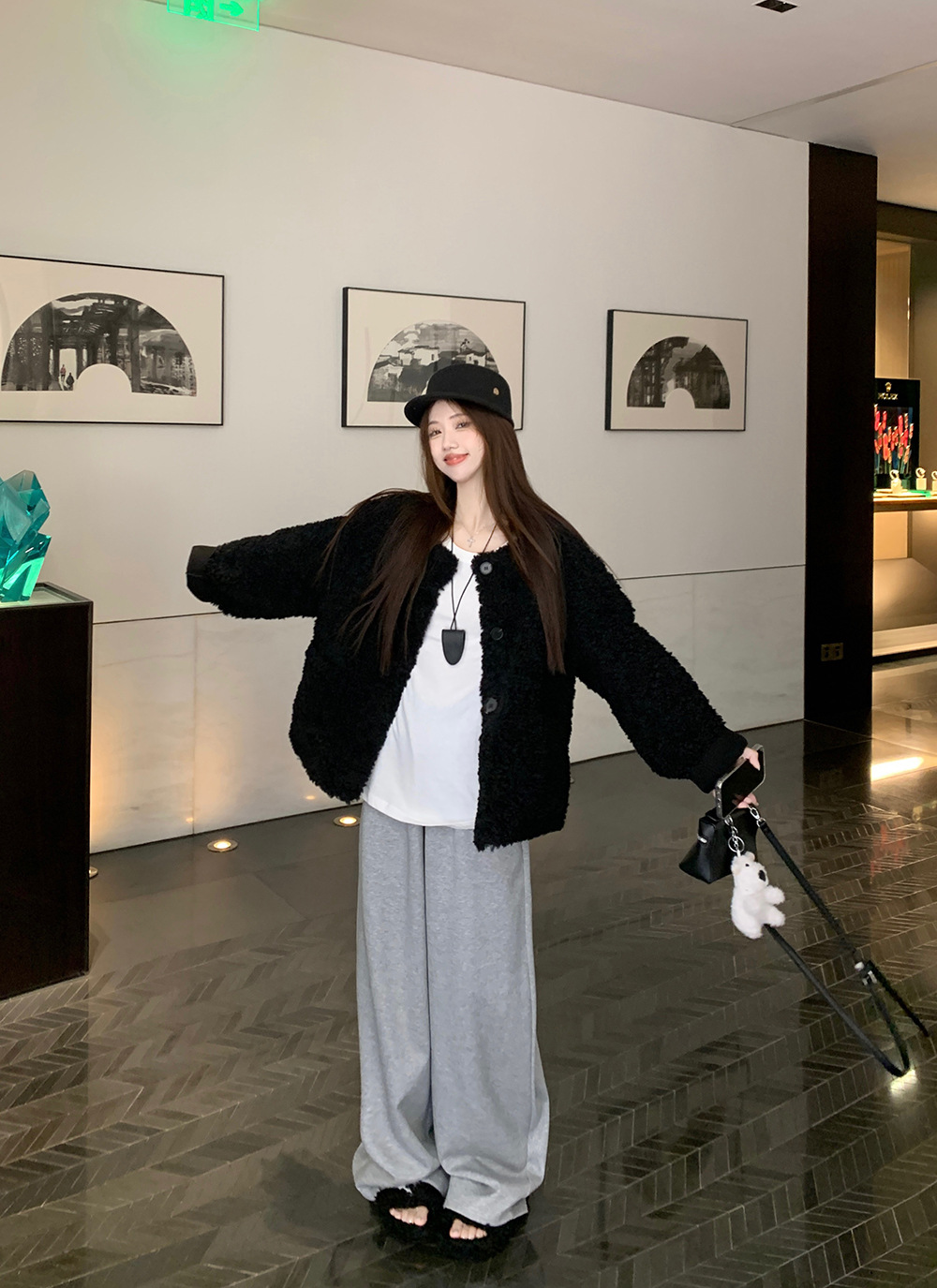 韩系早秋穿搭仿羊羔毛绒外套女秋冬季新款小个子香风宽松保暖上衣