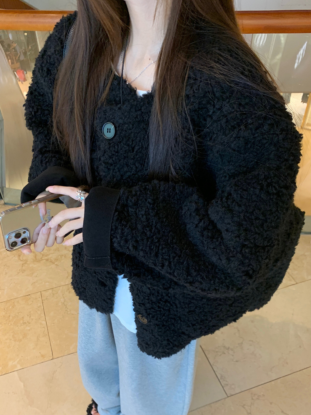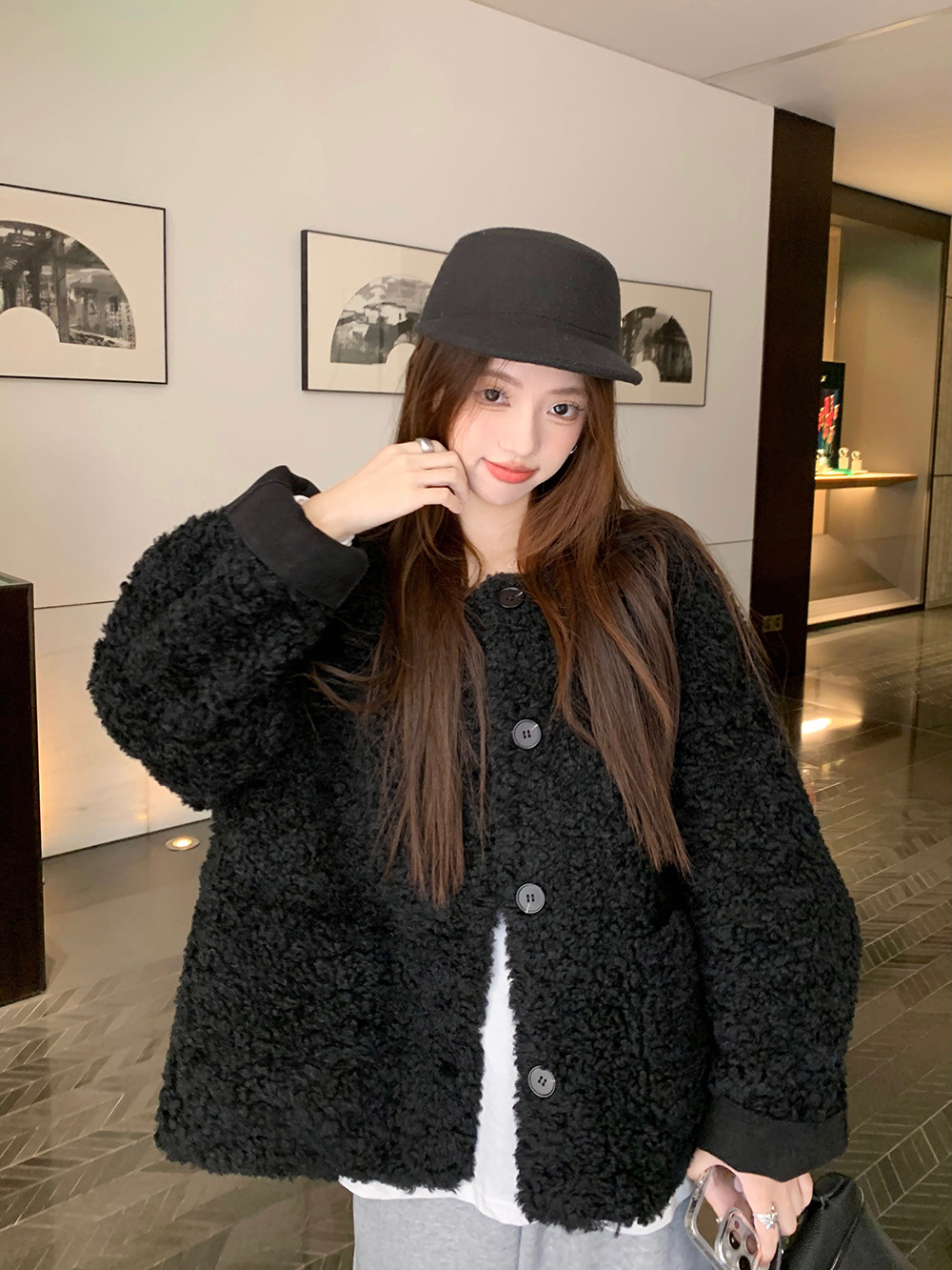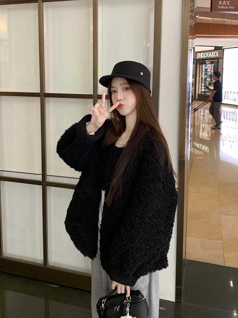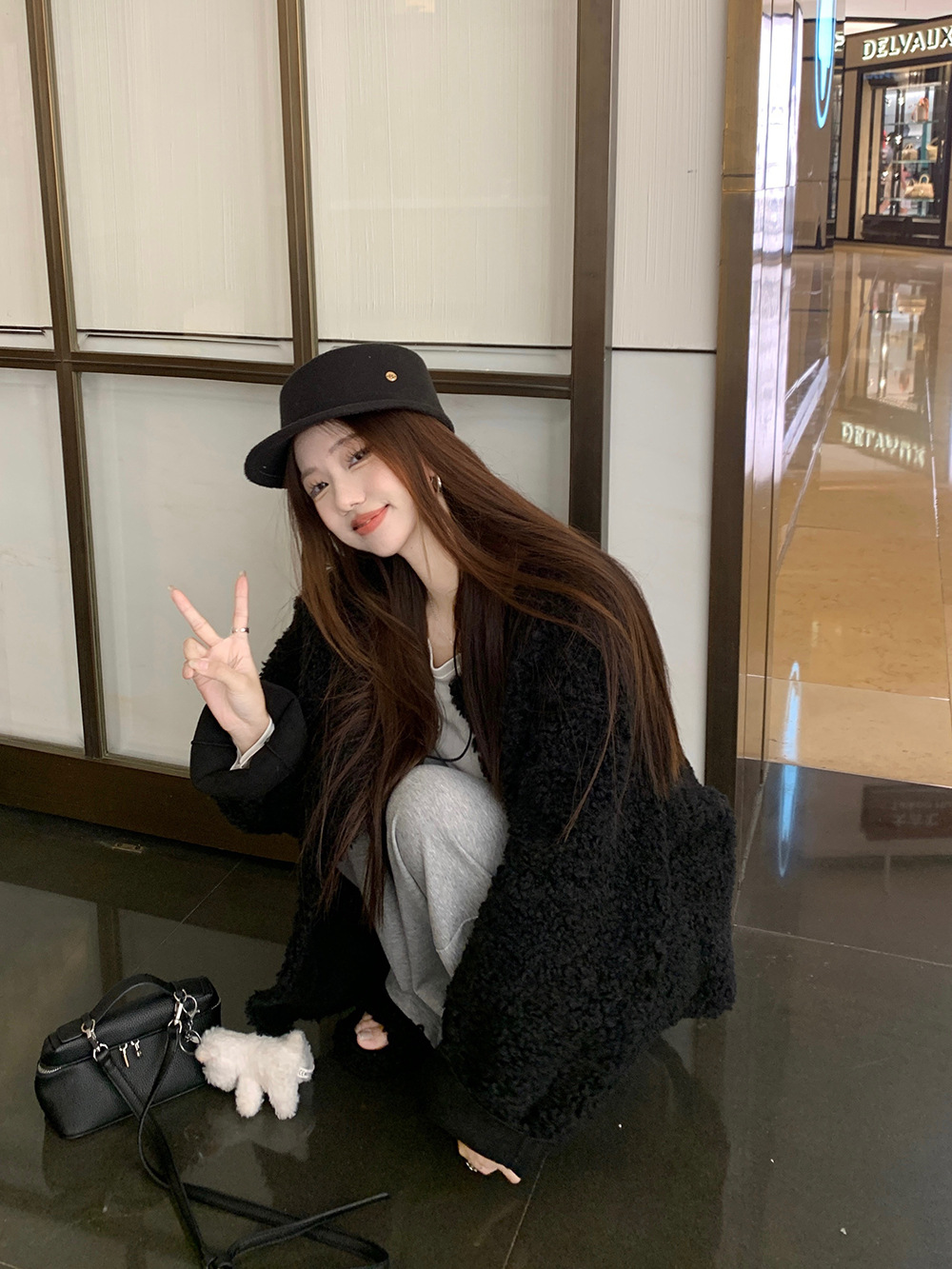優しい風の保温の子羊の毛のコートの婦人服の冬の韓系の怠惰な風のゆったりとしているカジュアルな黒色のベルベットの上着