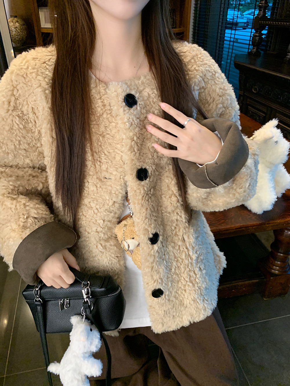 小さな香りのよい子羊ぬいぐるみジャケット女性の秋と冬 2025 新しい肥厚韓国ルーズトップハイエンド