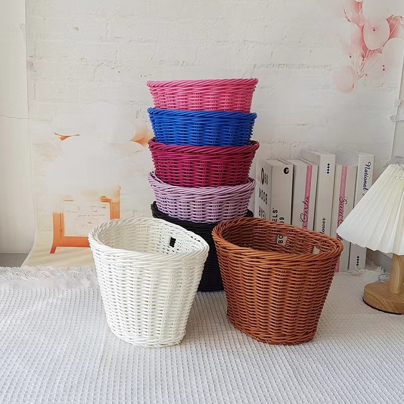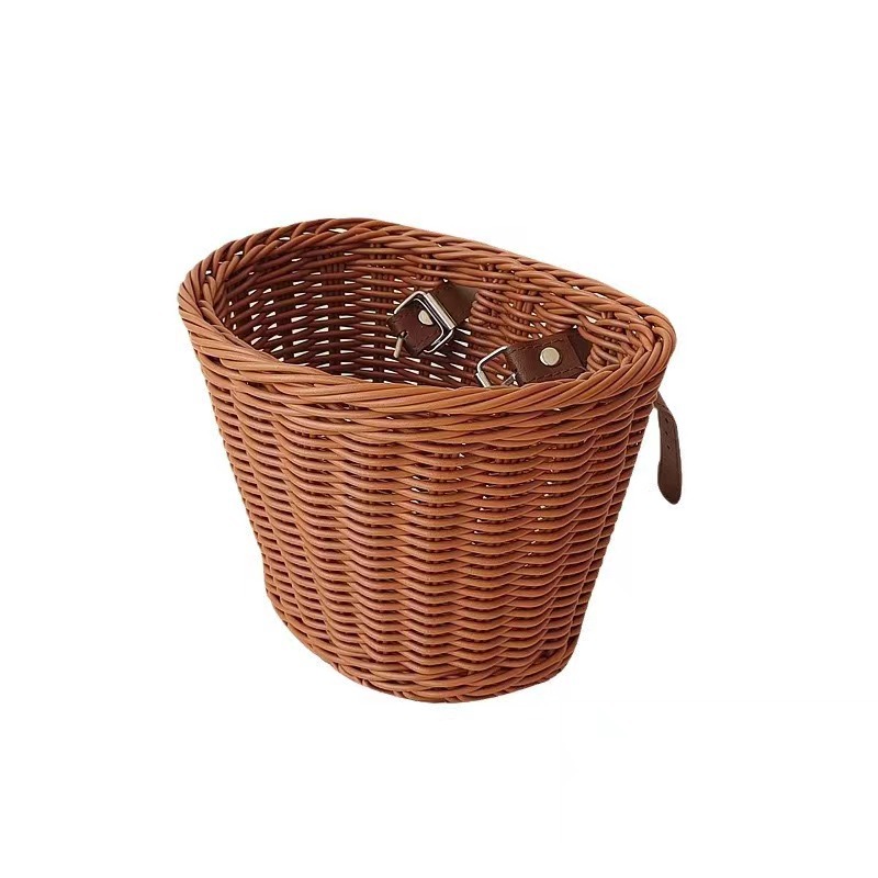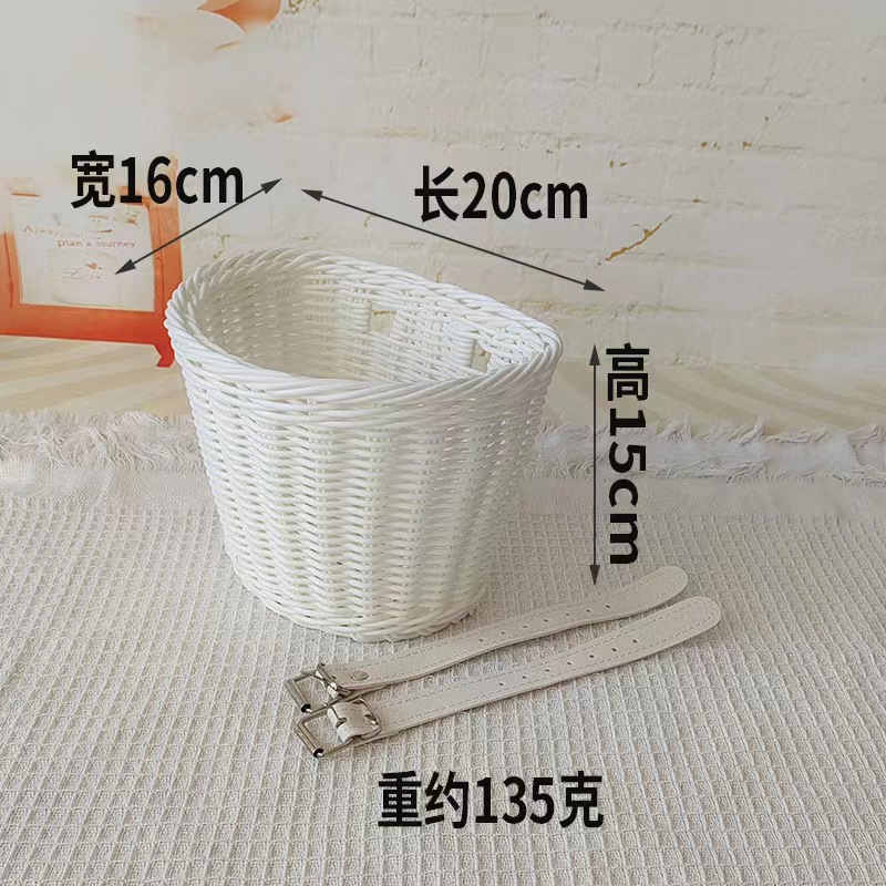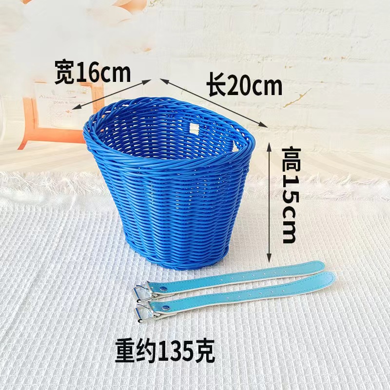 純粋な手作りの置物の藤編みの青い手押し車の間食の車のかごのバランスの学歩車の電気自動車の前の子供の自転車