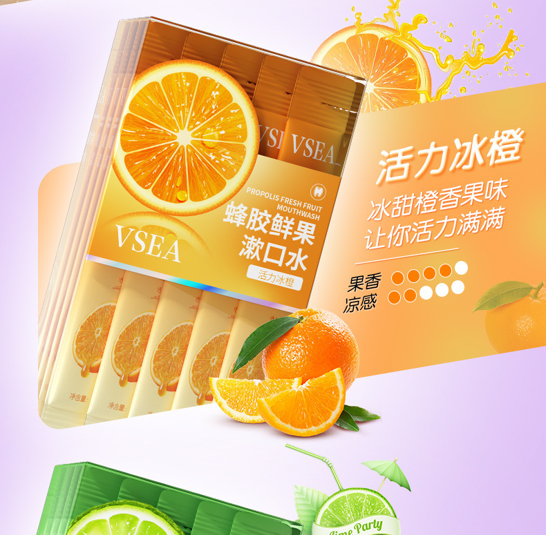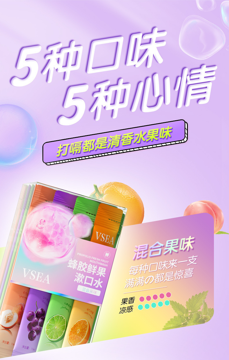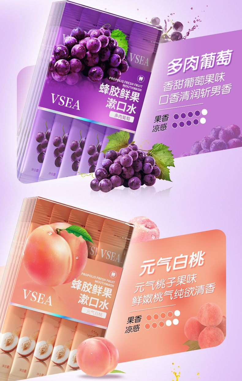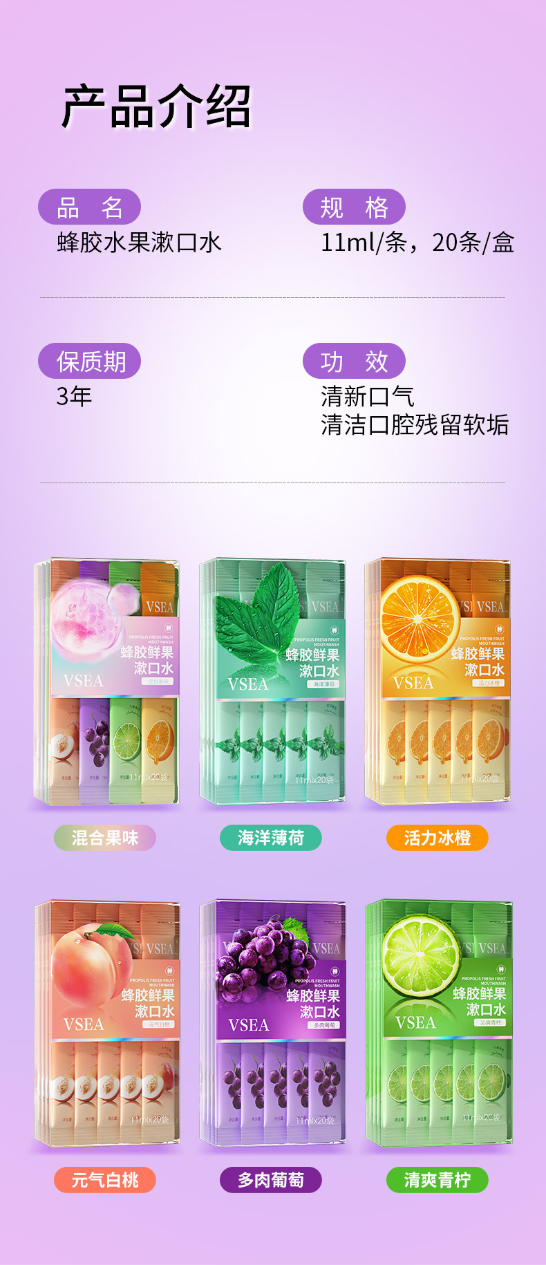 VSEA抖音爆品漱口水一次性涑口水便携清新口腔呵护牙齿厂家直销