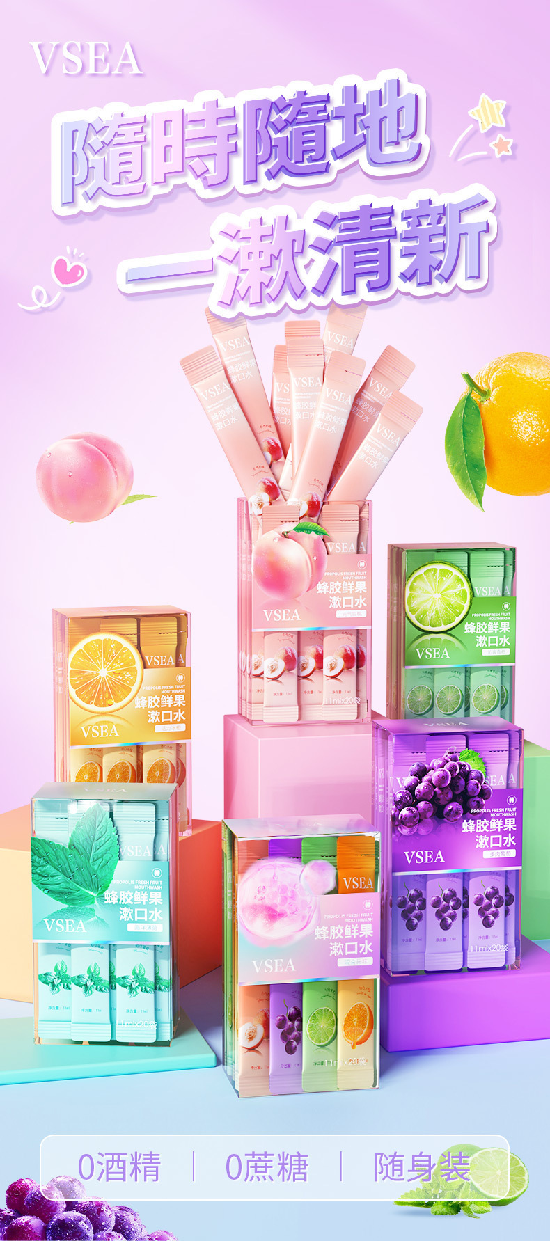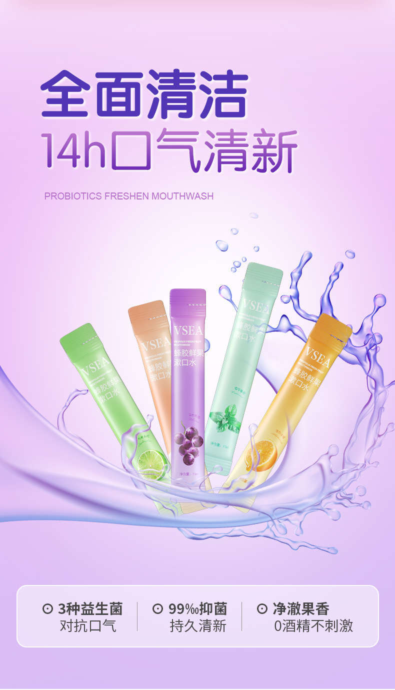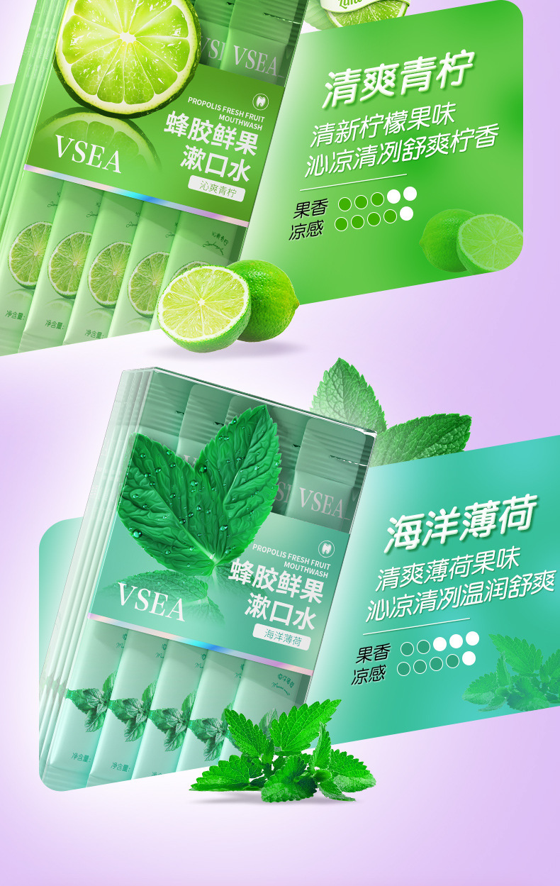 VSEA抖音爆品漱口水一次性涑口水便携清新口腔呵护牙齿厂家直销