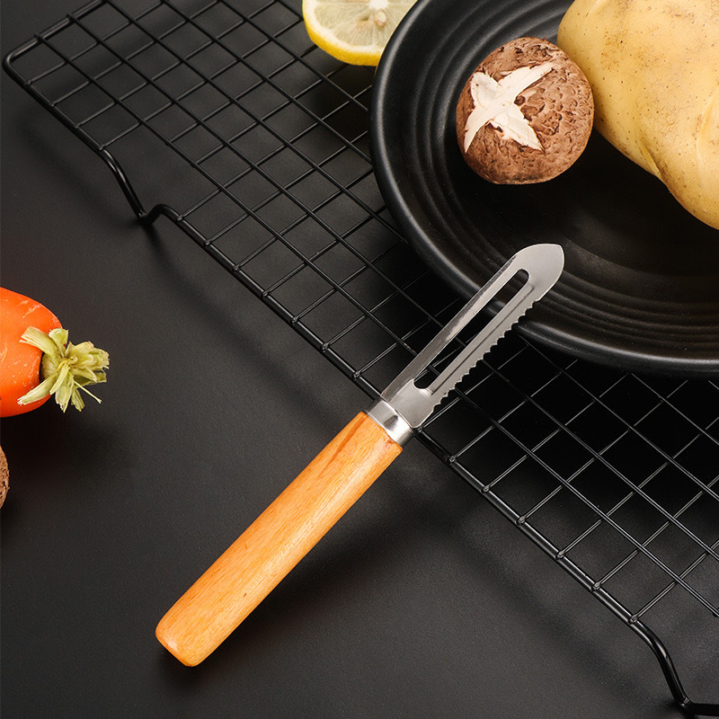 ステンレスの皮むき器の木の柄の皮むき刀のリンゴのジャガイモの皮むき刀