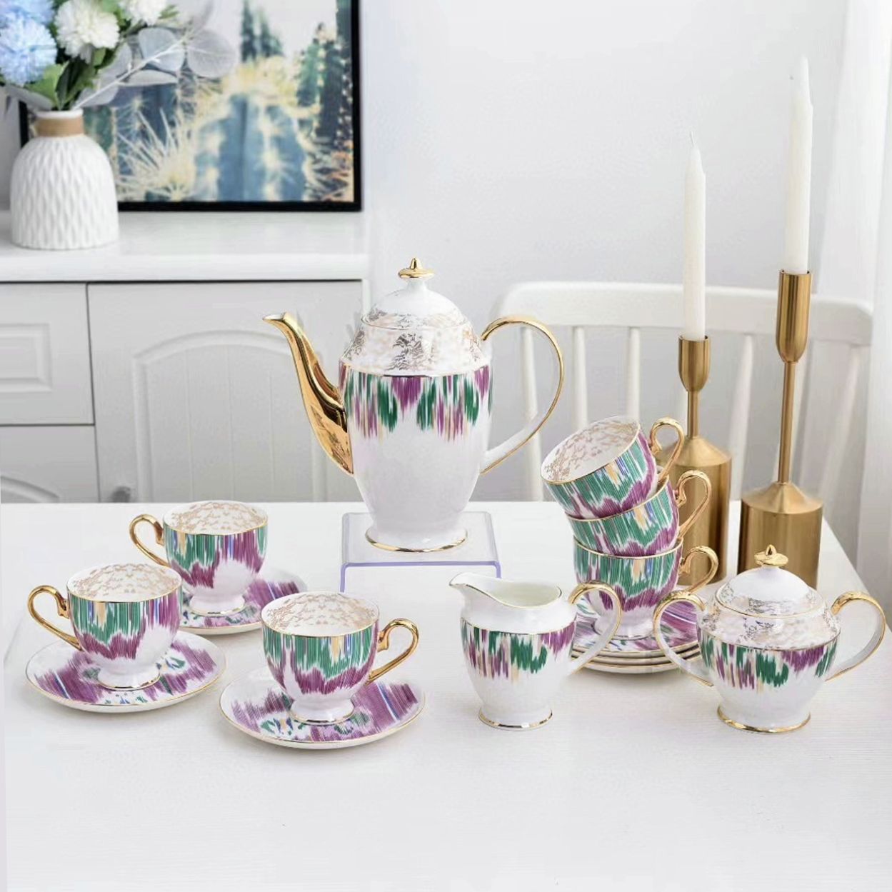 H家の赤道のジャングルのシリーズのヨーロッパ式の軽い豪華な骨の磁器のコーヒーの杯のティーポットのコーヒーのセットの家庭用の贈り物のセット