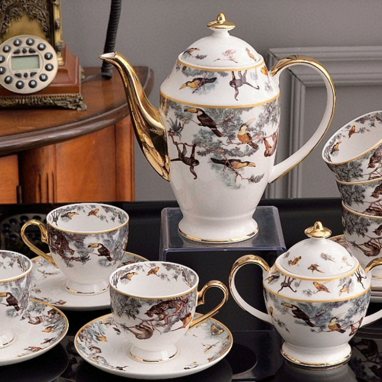 赤道ジャングル系洋食器セット 58点 高級マッチングボーンチャイナ コーヒーカップ ティーポットセット 家庭用クロスボーダー