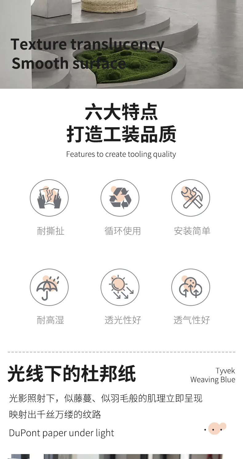 70グラム杜邦紙生地内装材料硬質特衛強繊維筋理透光背景布装飾軟膜