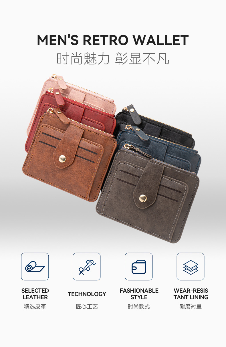 新品メンズ财布个性的なジッパー财布マルチカードホルダーカジュアルカードバッグ大容量多机能ビジネス小銭入れ