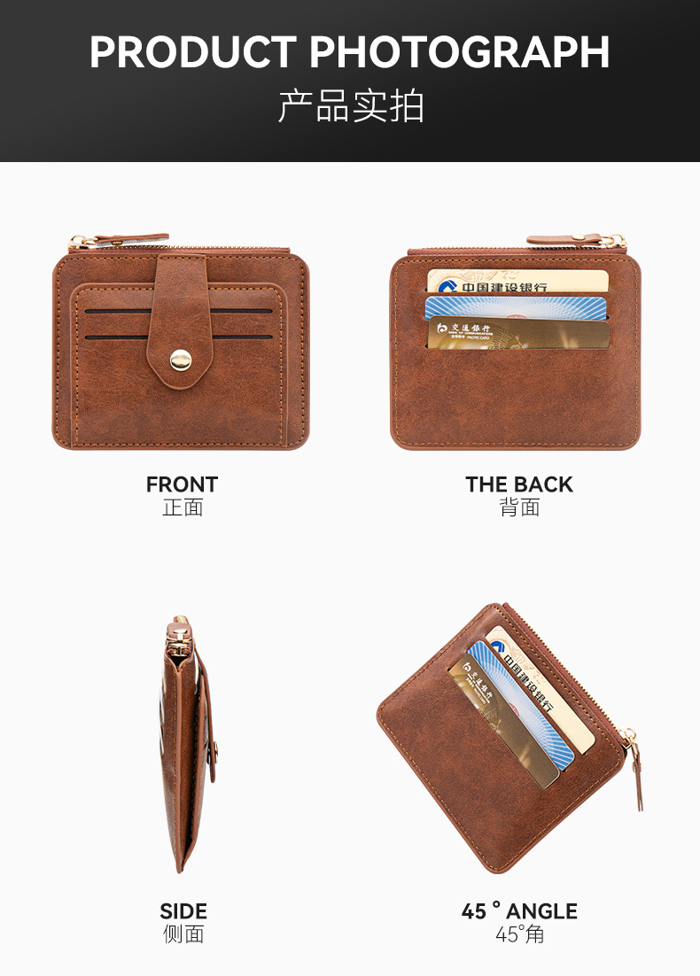跨境热销2025新款休闲卡包拉链多卡位零钱包多功能荔枝纹卡包批发