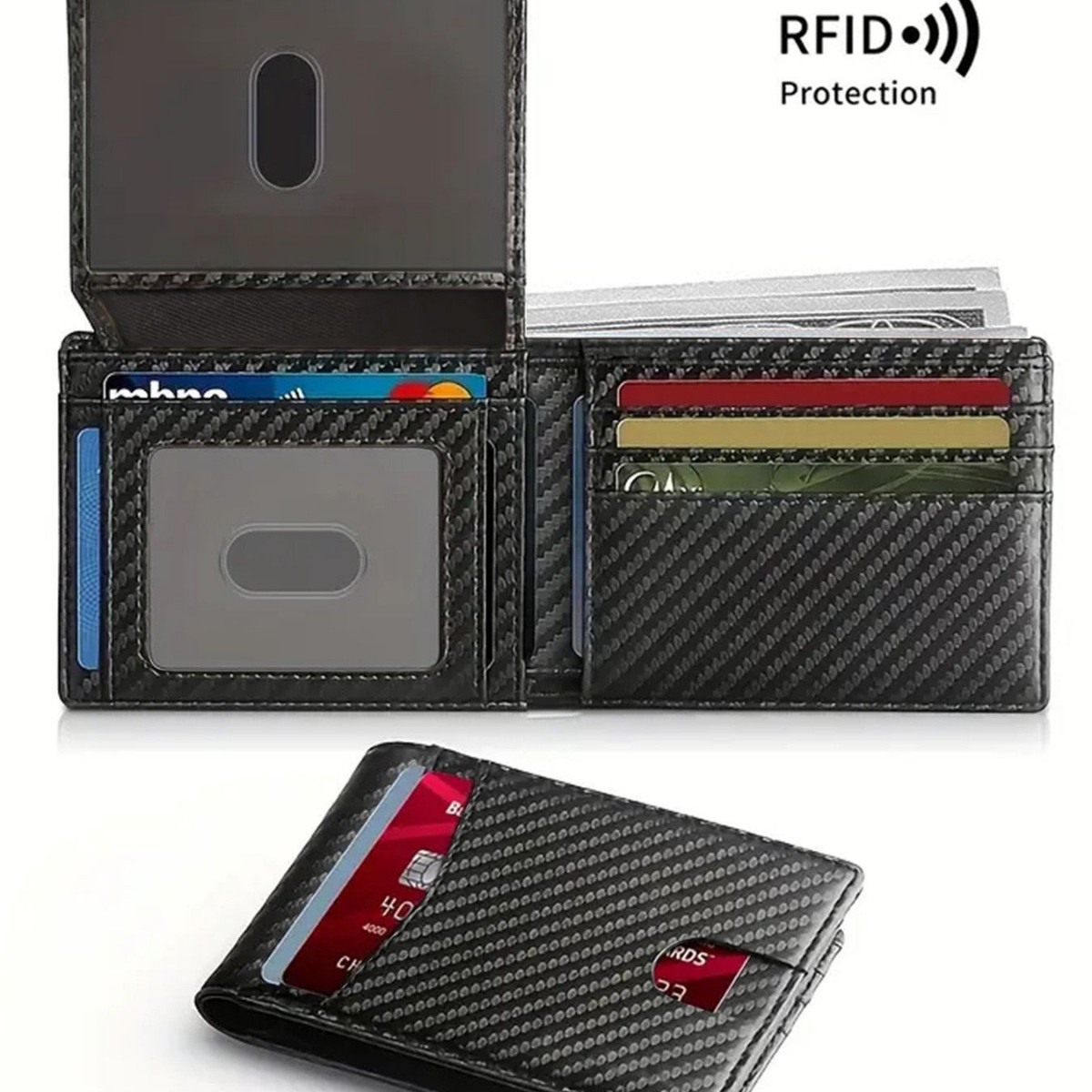 亚马逊热销男士钱包14卡位RFID卡包碳纤纹钱包大容量两折皮甲防盗