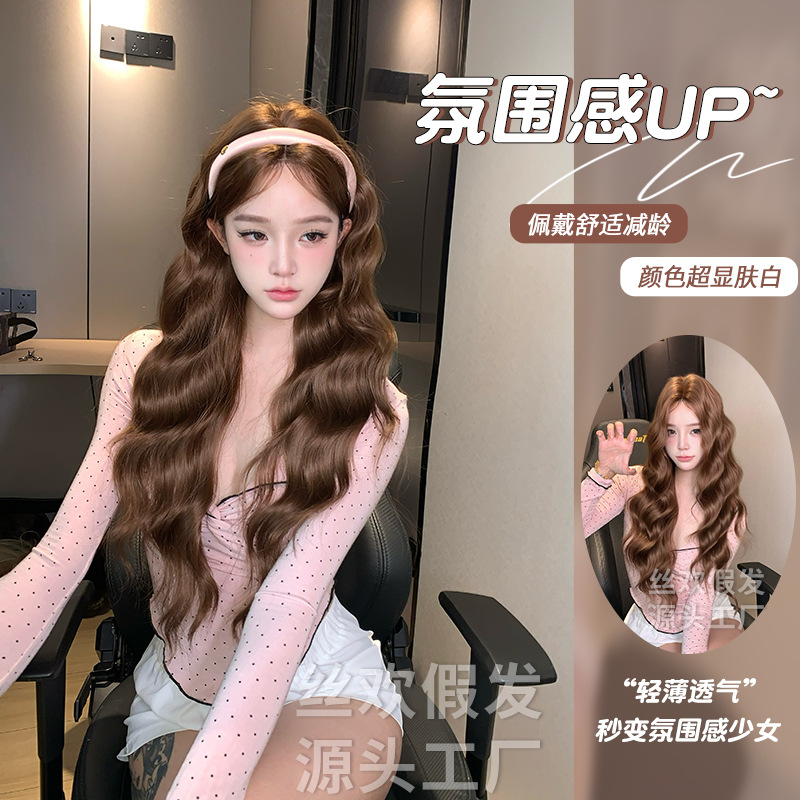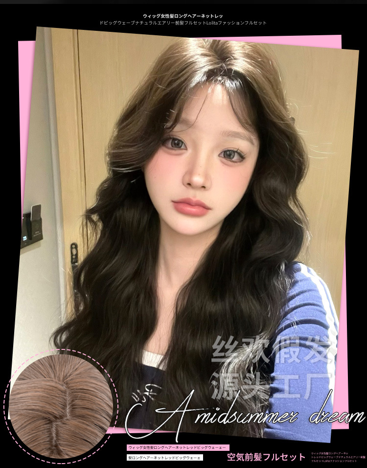 糸歓クロスボーダー卸売りかつら女性日常砂金ネット赤長巻き髪自然甘いjkかつら全頭カバー式