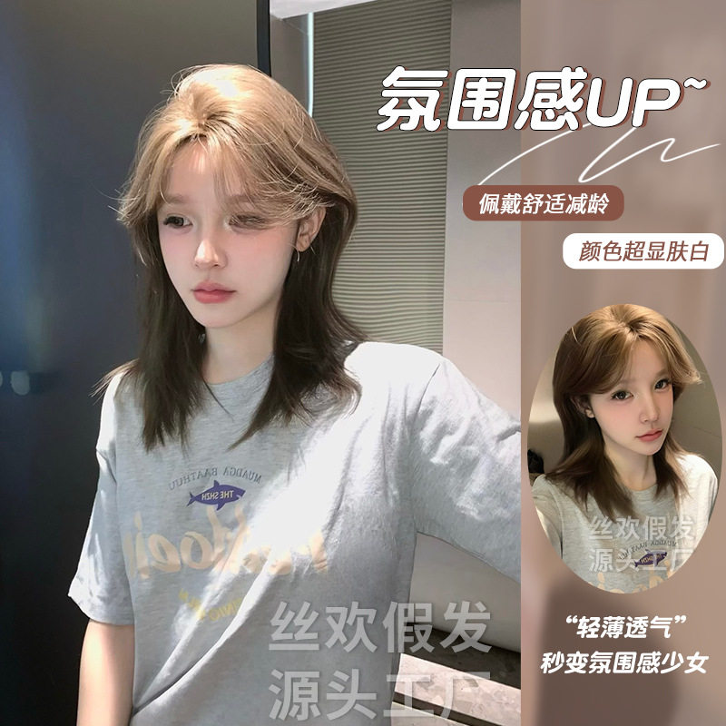 糸歓クロスボーダー卸売りかつら女性日常ネット赤短髪巻き髪夏の新型自然全頭カバーかつら
