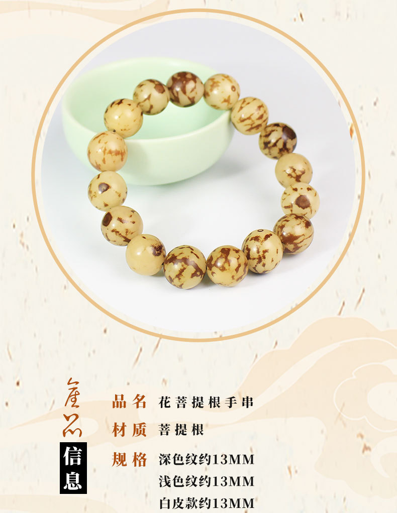 お好みに合わせて約13MM,花菩提根 ライトグリーン花皮 13MM,花菩提根 ダークグリーン花皮 13MM,花菩提根ブレスレット ライトカラー,花菩提根ブレスレット ダークカラー