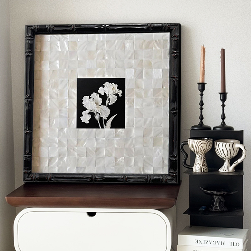 レトロフランス風植物花卉画玄関のサイドキャビネット真珠鎖八角形民宿ソフトリビング寝室書斎掛け絵