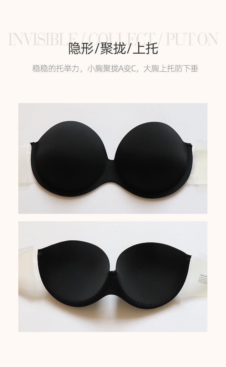 痕跡のない薄い丸い杯のシリカゲルの見えないブラジャーの無鋼輪の光沢面の無肩ベルトは大きいサイズの胸を集めて下着を貼ります。