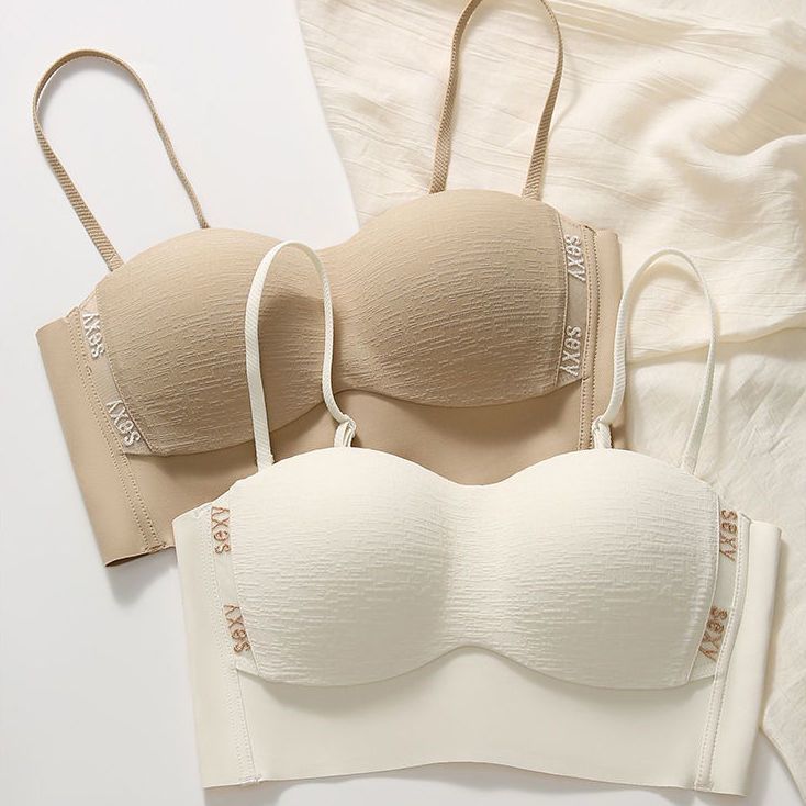 プッシュアップストラップ付き貧乳下着、女の子のセクシーなシームレスな胸引き締めサポート、ノンワイヤー調整ブラセット