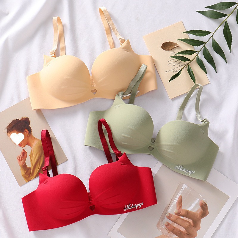 クロスボーダーの一枚式の厚い下着の女性の無鋼の輪の無痕の少女の学生の甘い小さい胸は耳の文のブラジャーを集めます。