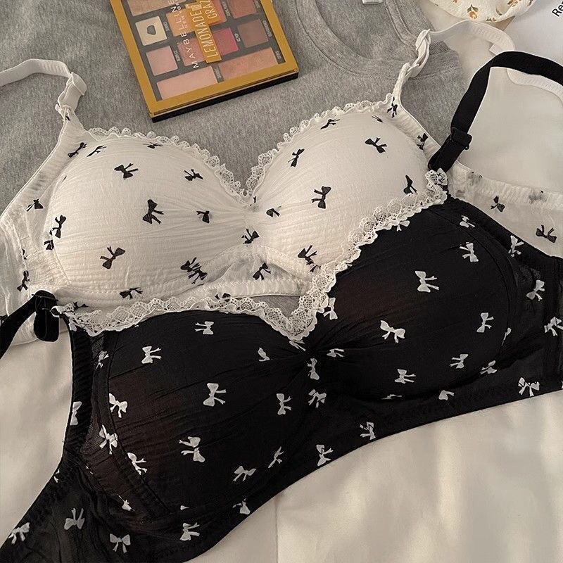 跨境少女无痕内衣小胸聚拢舒适甜美薄款舒适学生蝴蝶结透气文胸罩