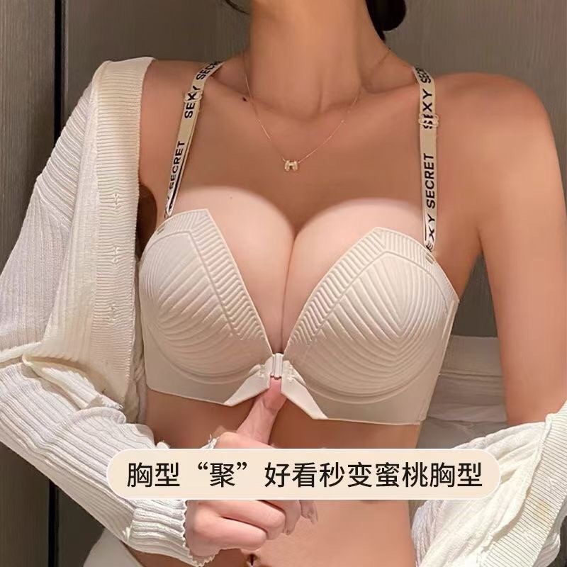 前扣美背无痕内衣女小胸聚拢显大上托防下垂无钢圈收副乳文胸罩