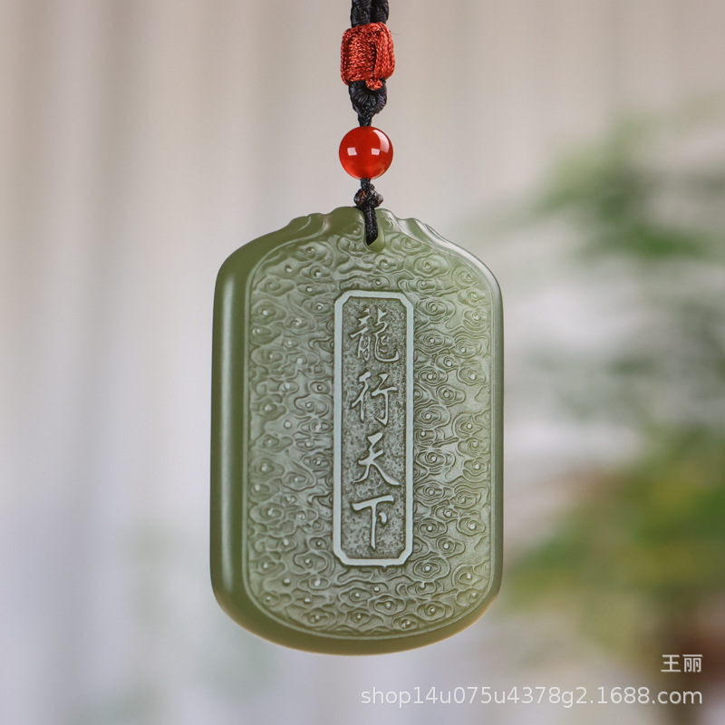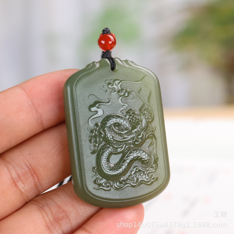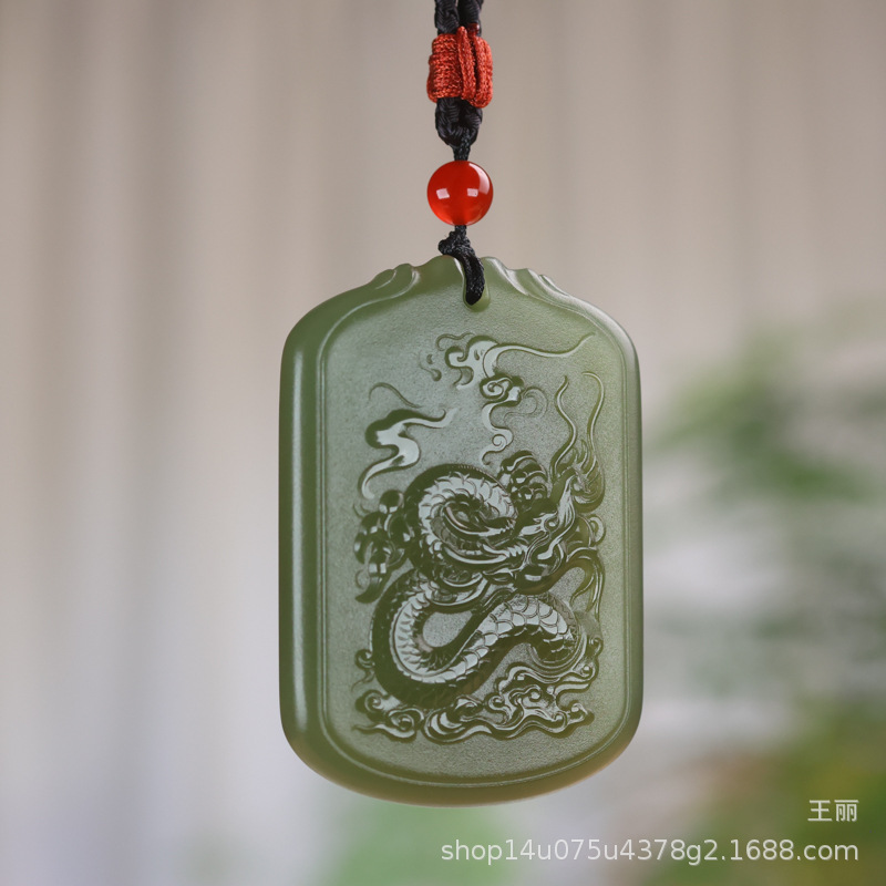天然和田玉龍牌ペンダント青海材料湖水緑龍行天下玉牌模造生肖玉ペンダント