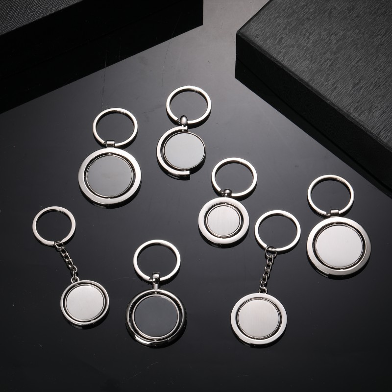 個性的でファッション的でシンプルなキーホルダー回転円形キーホルダーはレーザーで様々なデザインの規格を刻むことができます。