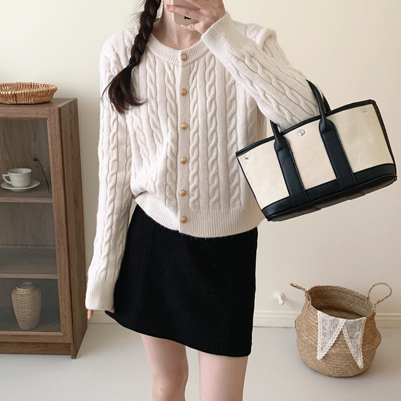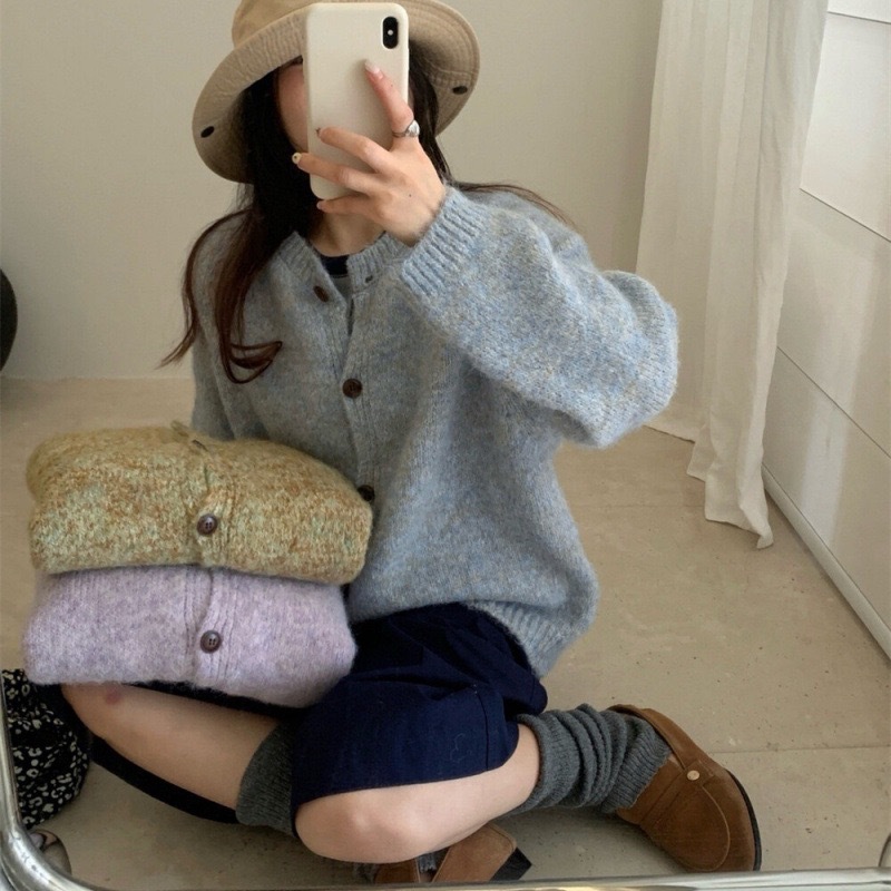 2025年秋冬季新款韩版宽松显瘦圆领针织开衫女款百搭毛衣外套上衣