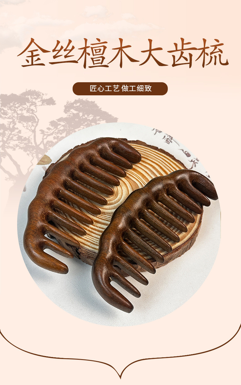 新商品の金糸檀木の大きい歯の櫛のメーカーの現物の幅の太い厚い経絡は頭皮の檀木の頭をマッサージして櫛を治療します。