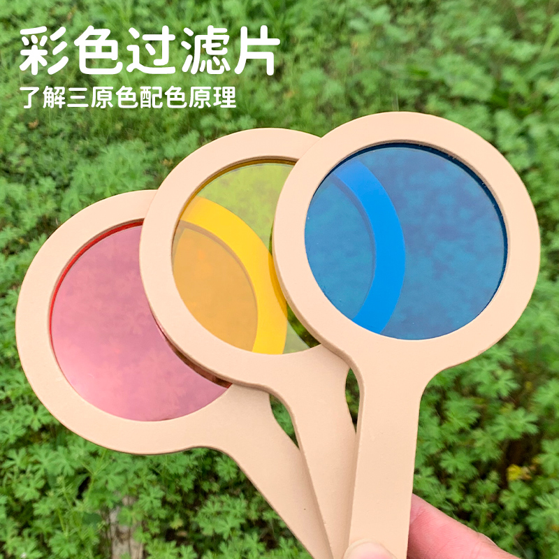 プレートフィルタ区カラー透光科学三原色教具認知変色幼稚園のカラーパッチに色を重ねます。