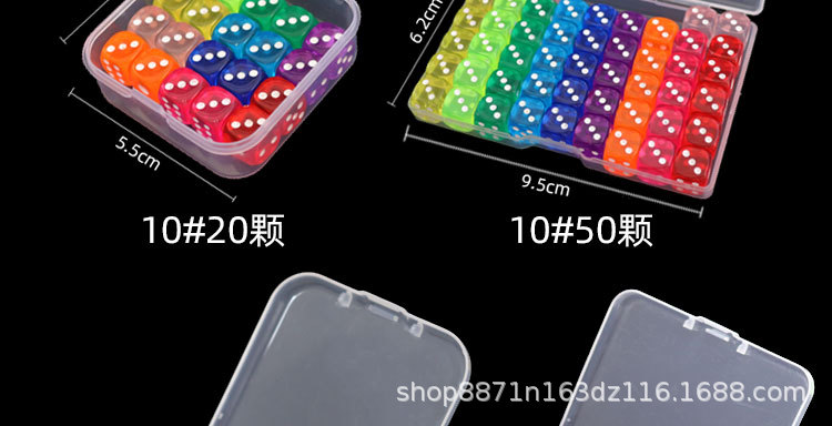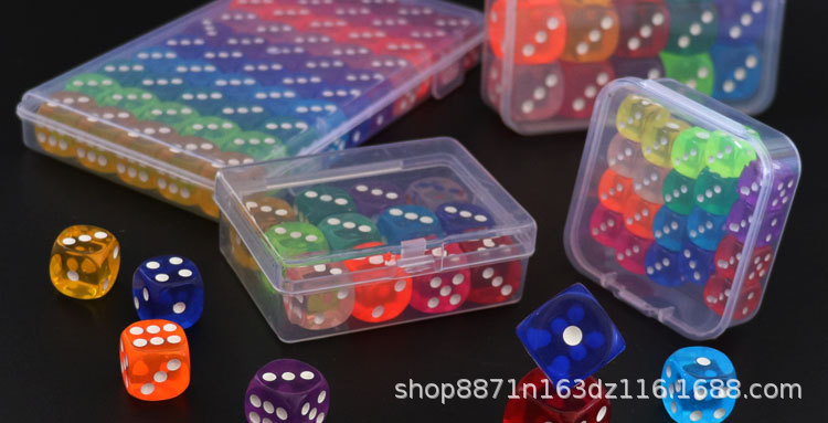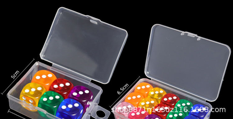 现货14mm圆角透明混10色5粒装盒50粒桌游跑团跨境直供亚克力骰子