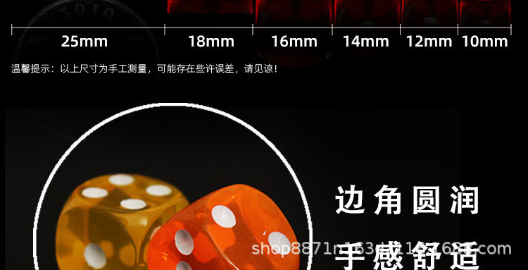 现货批发圆角亚克力彩色水晶骰子多色选择12#14#16#骰子麻将机用