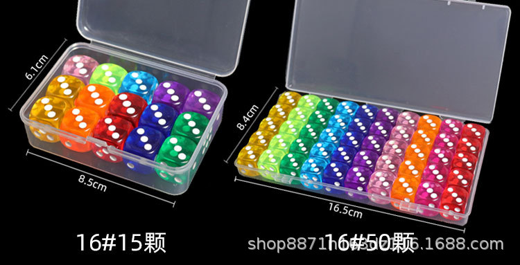 16mm彩色透明圆角桌游跑团配套游戏娱乐教学教具高档亚克力小骰子
