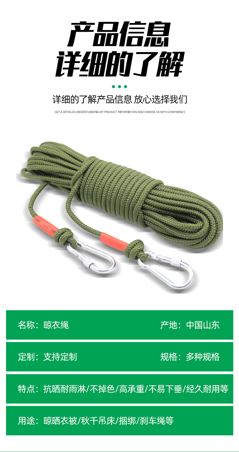 物干しロープ卸売り国境を越えた対外貿易戸外カラーフック付き物干しロープ結束ロープテント結束ロープ
