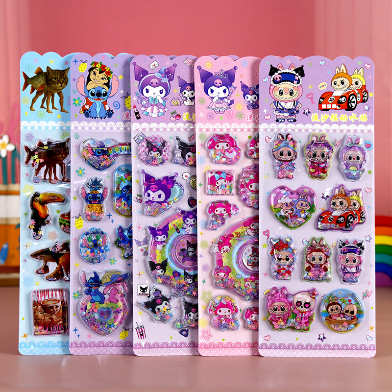 儿童卡通贴纸 三丽鸥拉布布史迪仔山海经3D立体流沙摇动水贴画