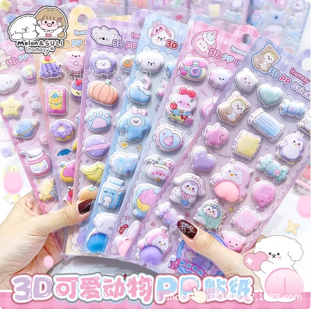 可爱萌宠摇摇乐贴纸多巴胺3D立体水贴画儿童装饰贴手账贴纸水贴