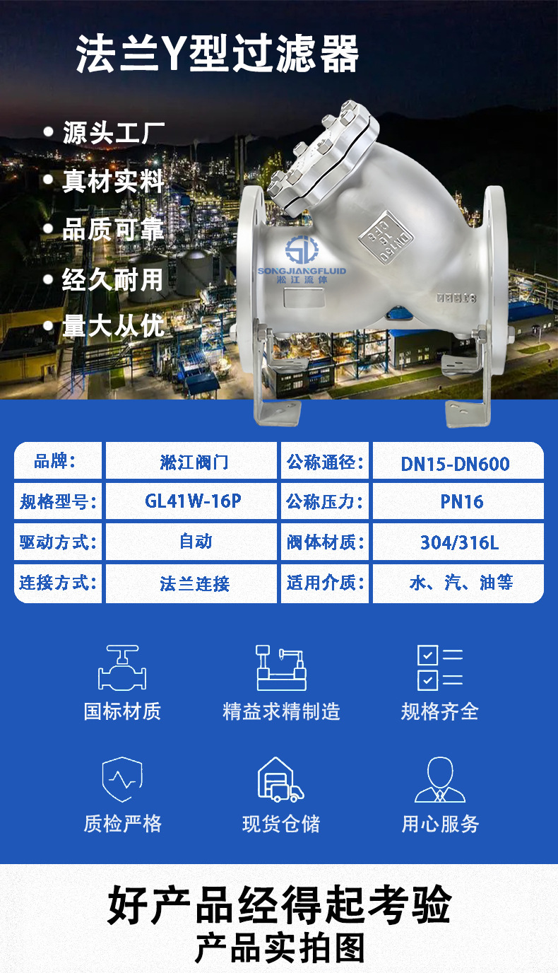 フランジy型フィルタGL41W-16Pステンレス化学工業汚水管排水弁は酸アルカリ腐食に耐える