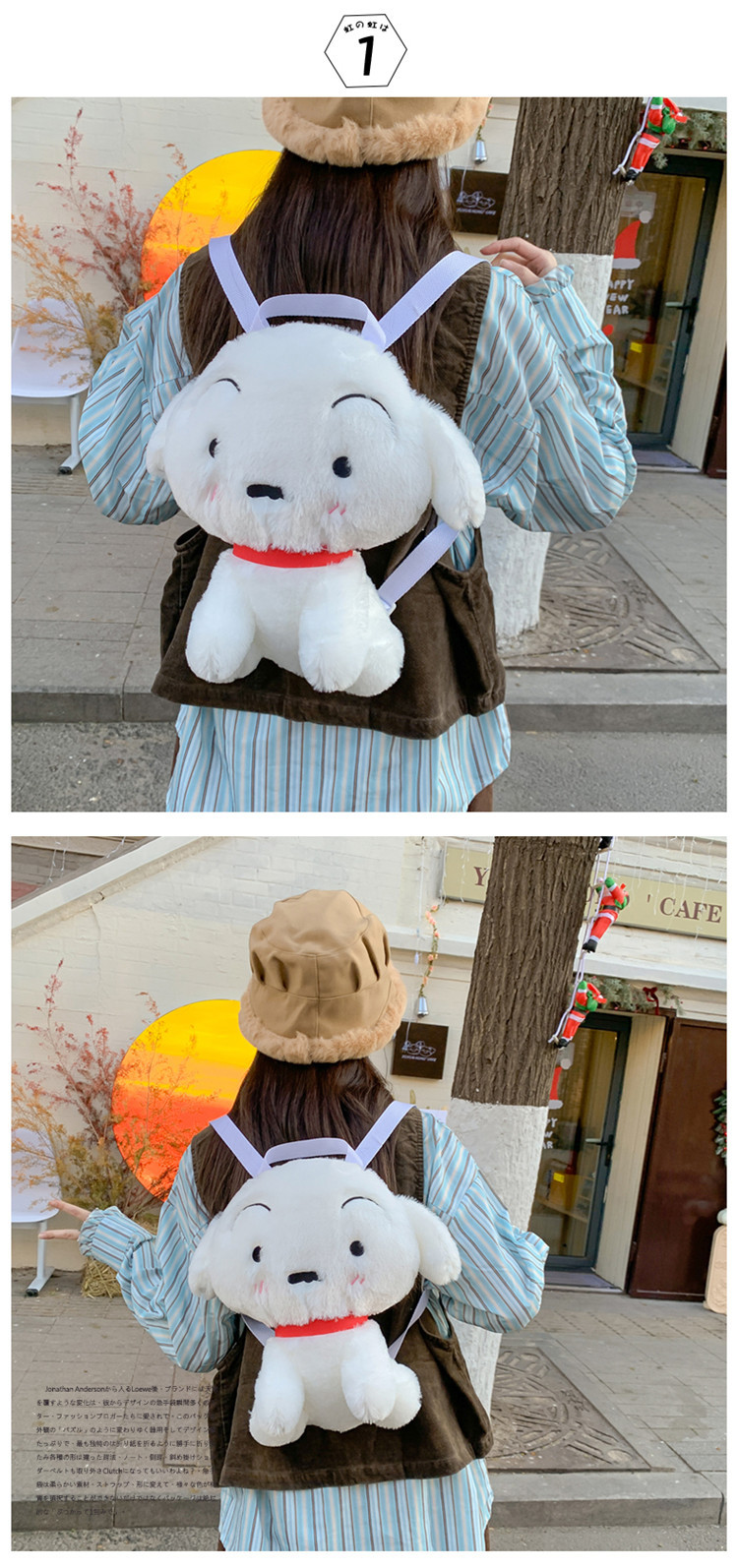 日本風の小さなモンスター柄リュックサック、かわいい学生向け、中学生、旅行、JK制服、ロリータ、大きな耳の犬、ぬいぐるみリュック