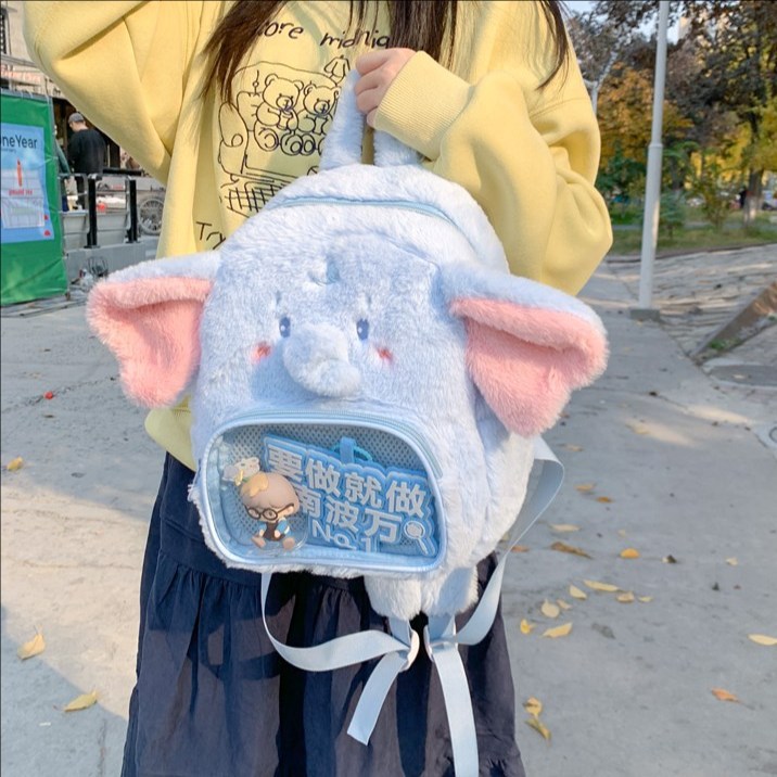 日系大耳朵蓝色小象双肩包甜美二次元透明痛包卡通大容量女生背包